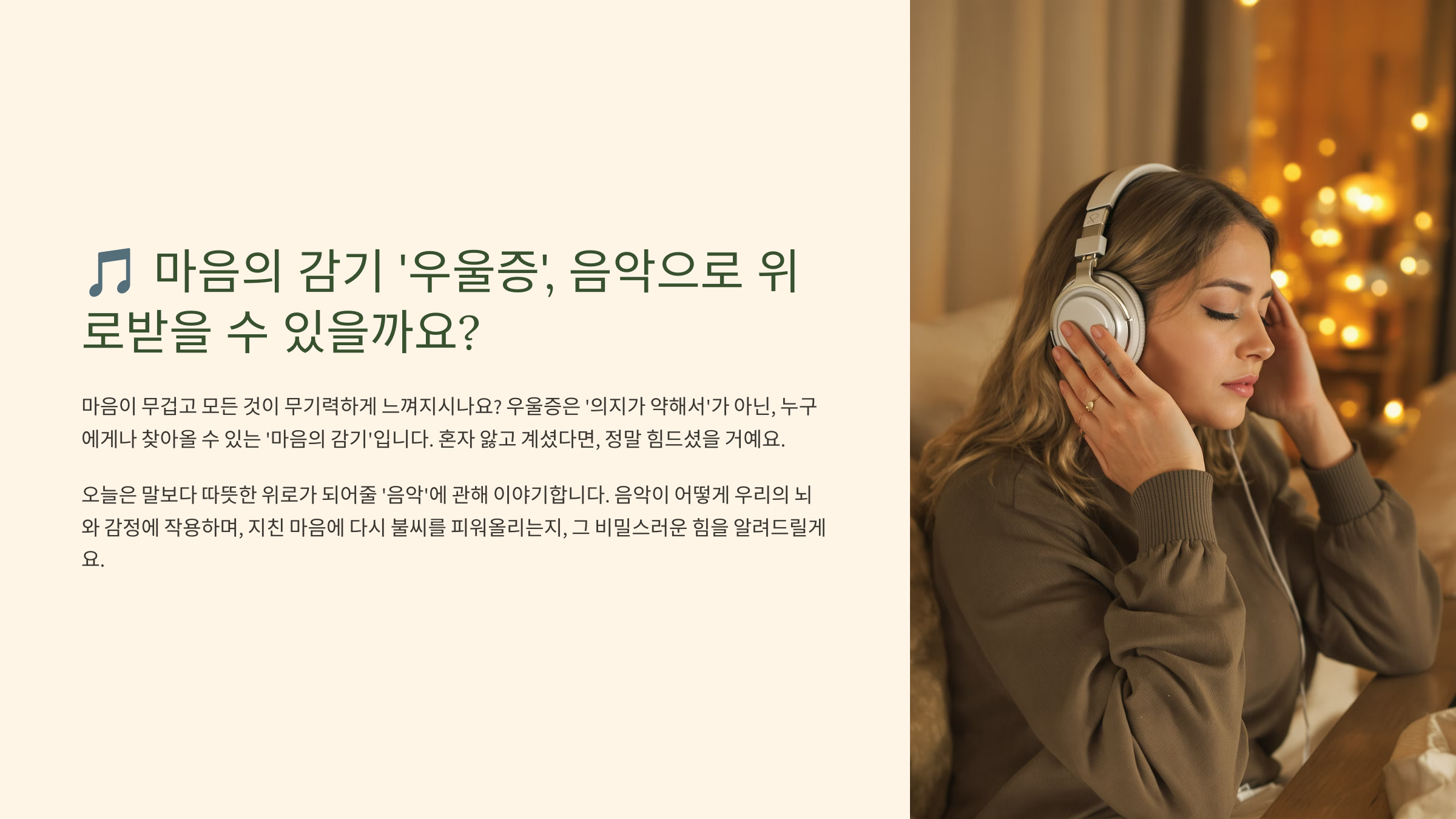 🎵 마음의 감기 '우울증', 음악으로 위로받을 수 있을까요? (지친 마음을 위한 소리 처방전)