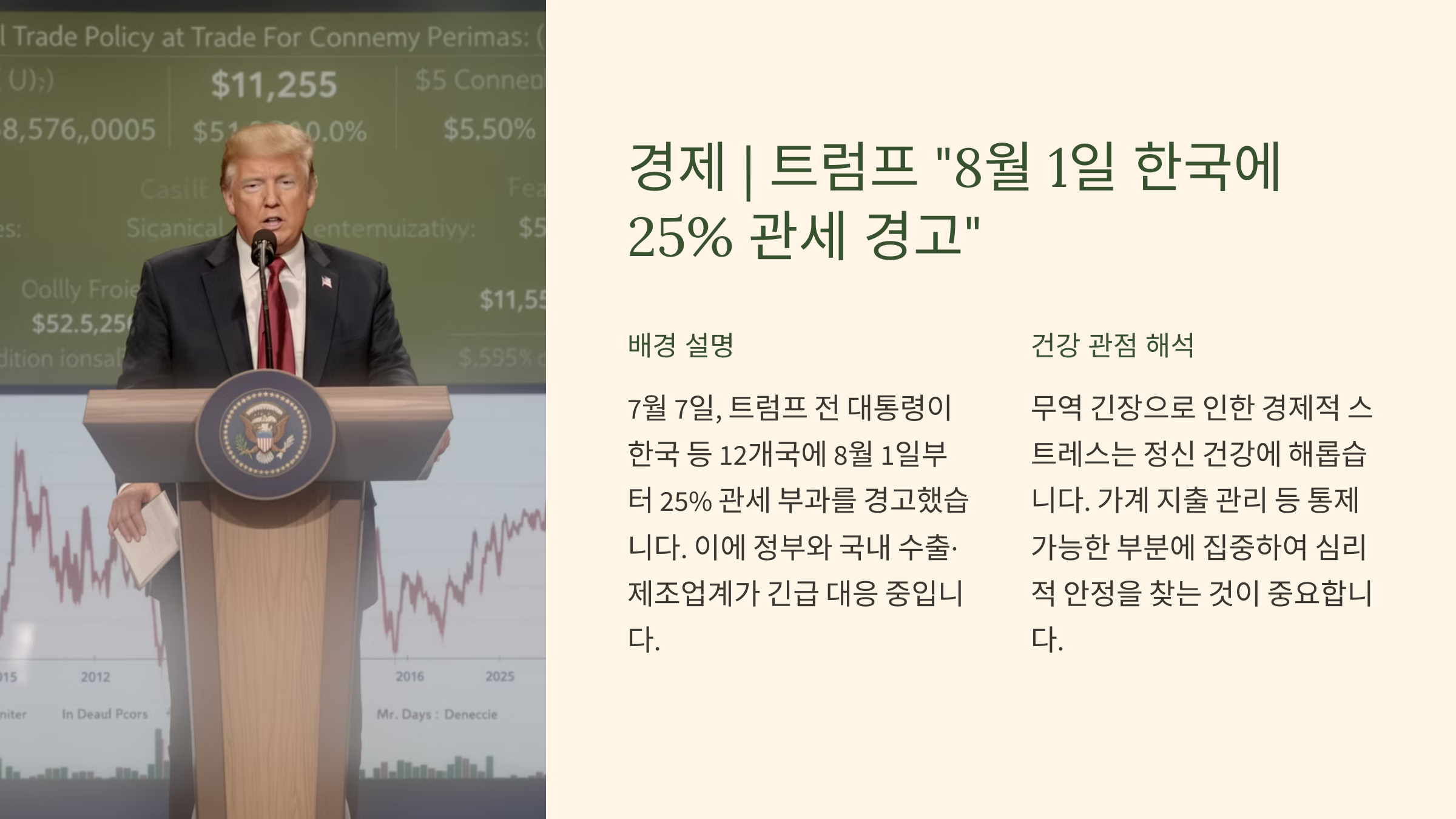 💰 경제 | 트럼프 “8월 1일 한국에 25% 관세 경고”