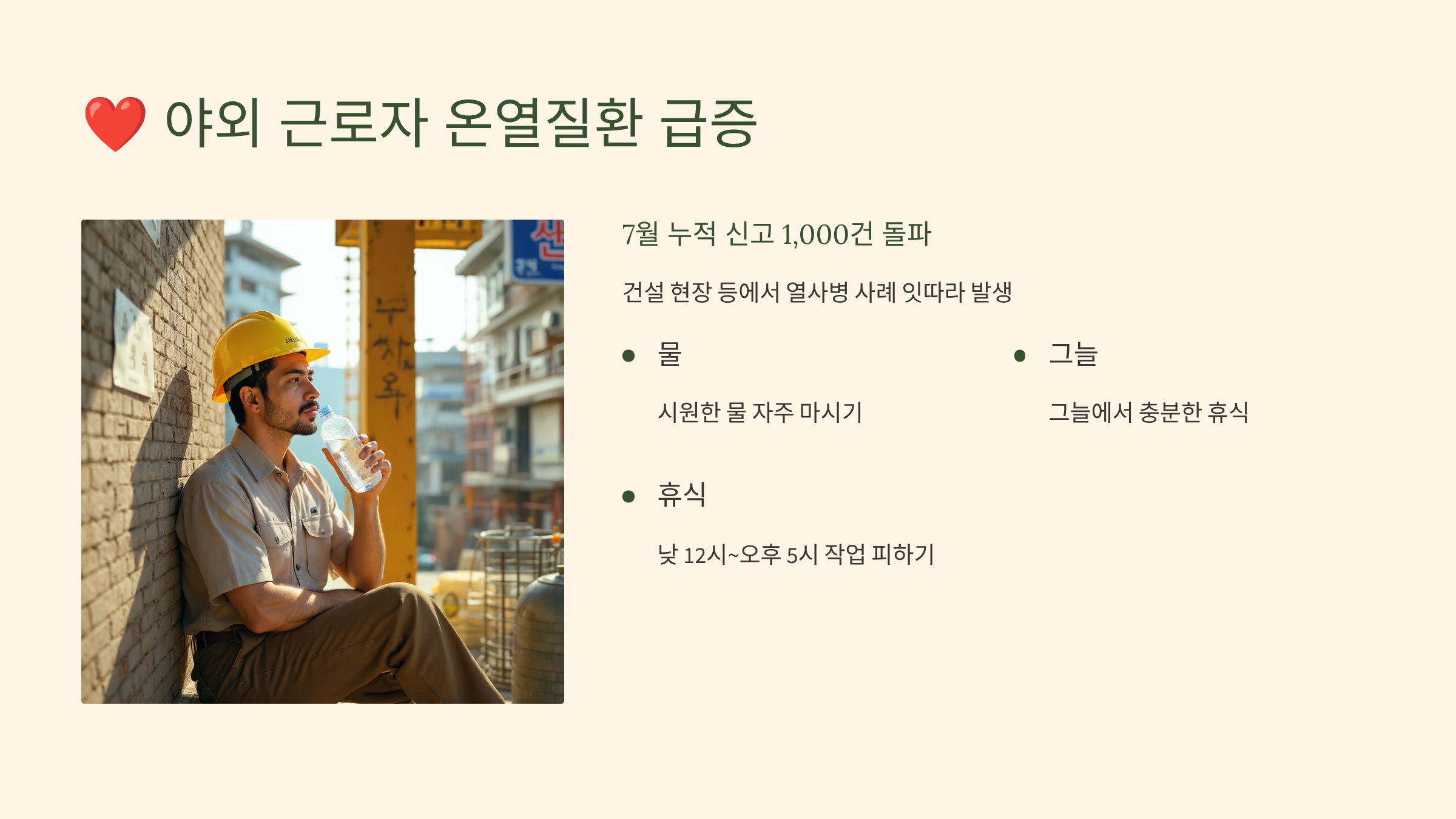 ❤️ [건강] 폭염 속 ‘야외 근로자’ 온열질환 신고 급증