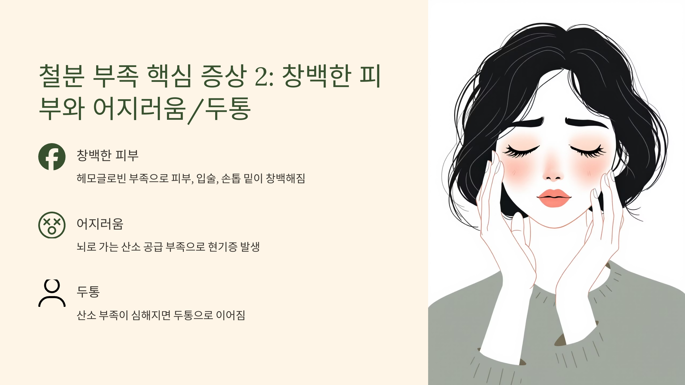 3. 철분 부족 핵심 증상 2: 창백한 피부와 어지러움/두통 😵