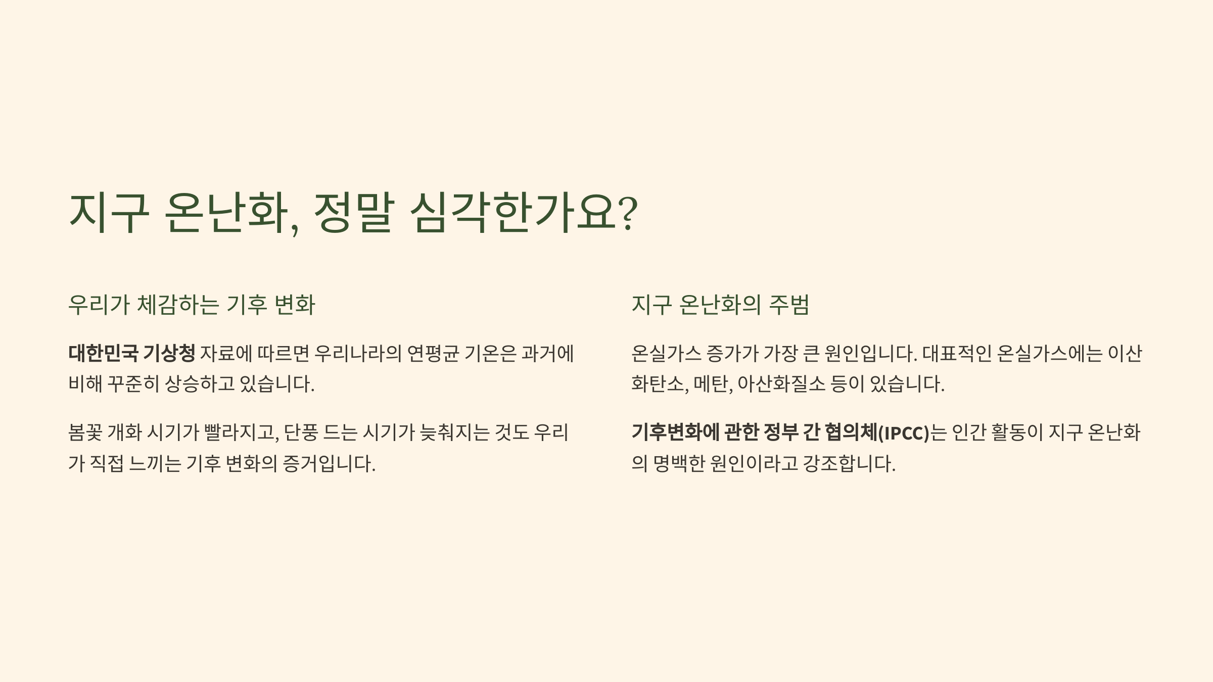 - (1) 우리가 체감하는 기후 변화: 단순한 날씨 변덕이 아니다!
