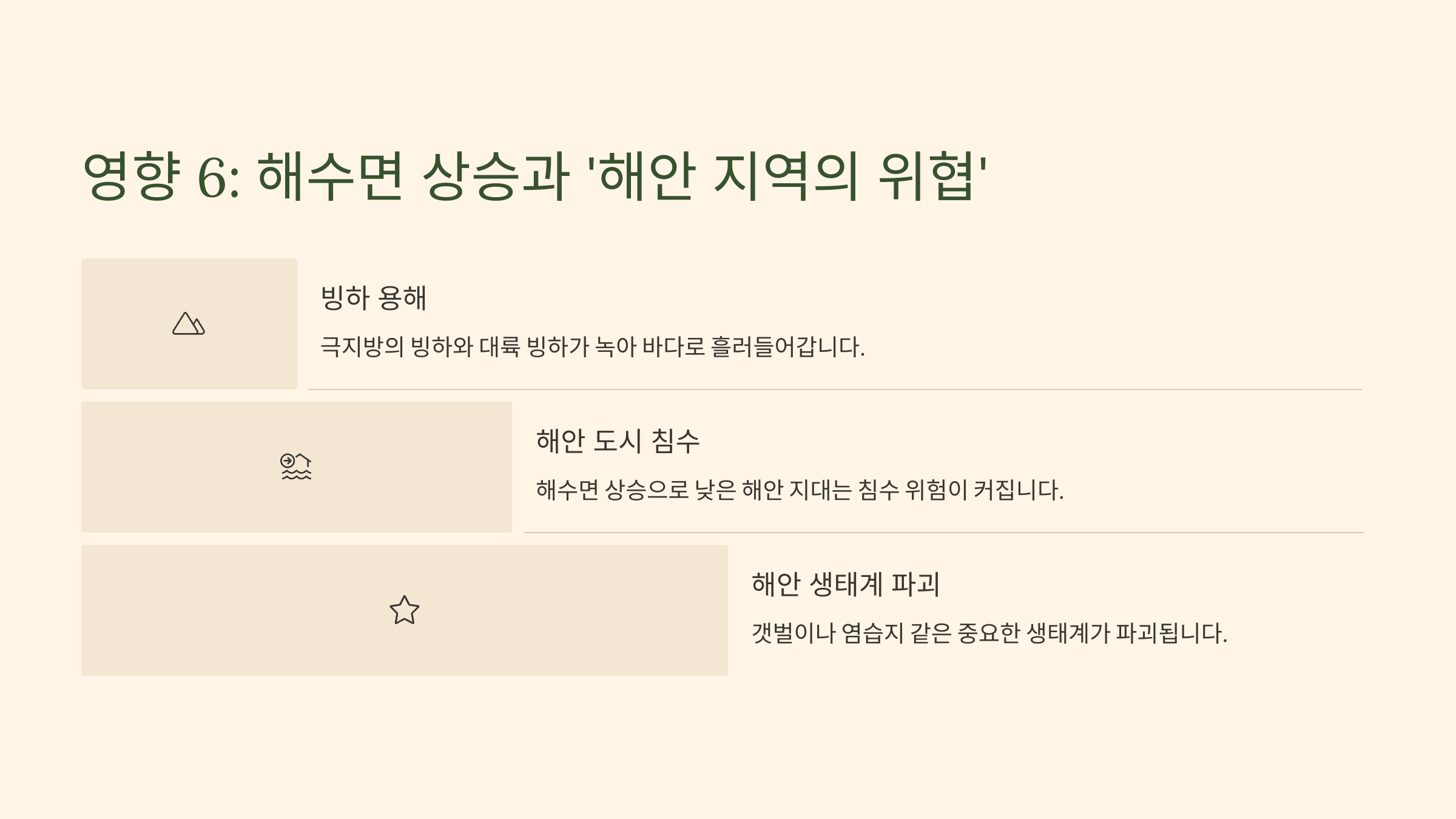 - 영향 6: 해수면 상승과 '해안 지역의 위협' 🌊