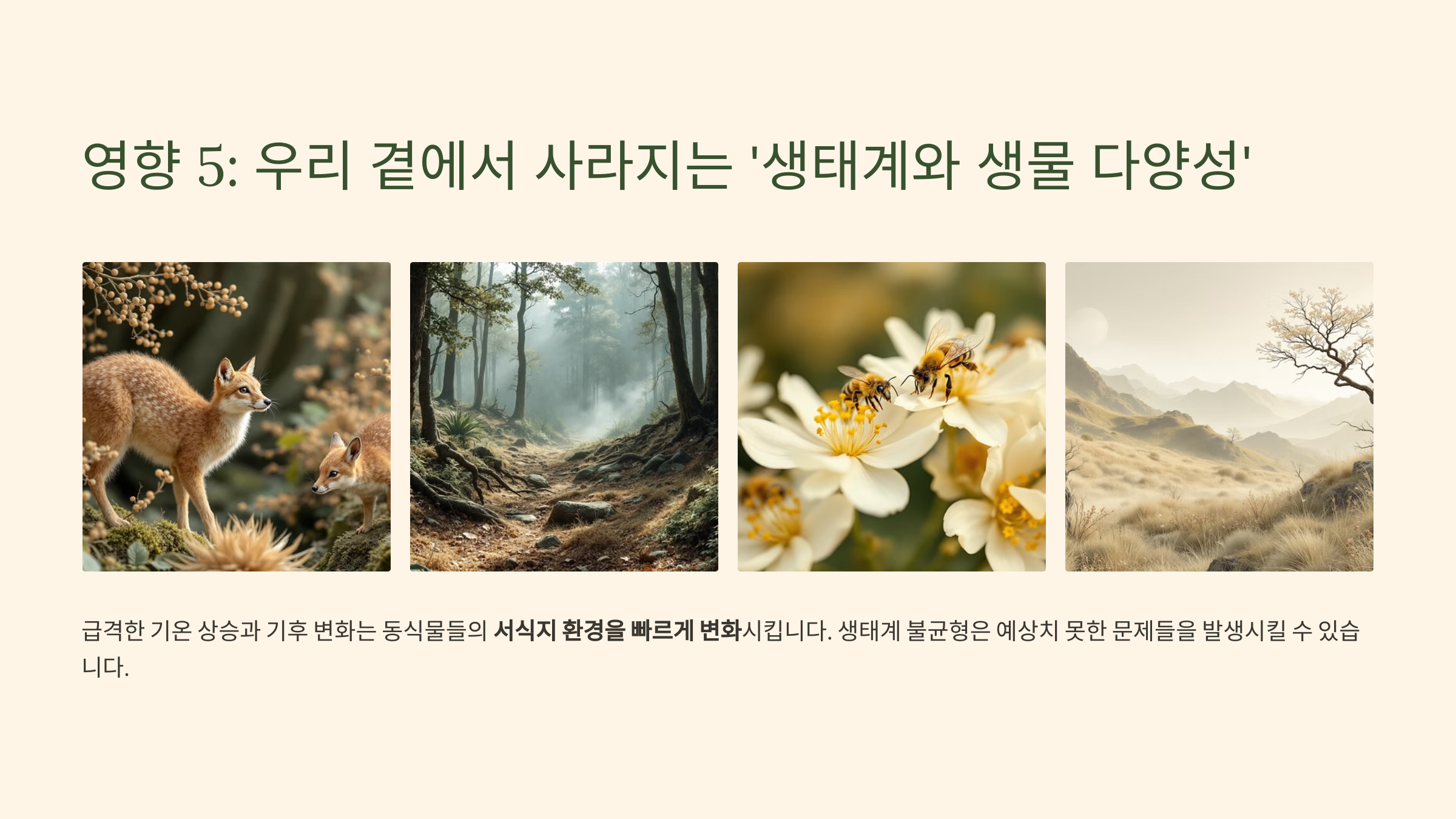 - 영향 5: 우리 곁에서 사라지는 '생태계와 생물 다양성' 🦋