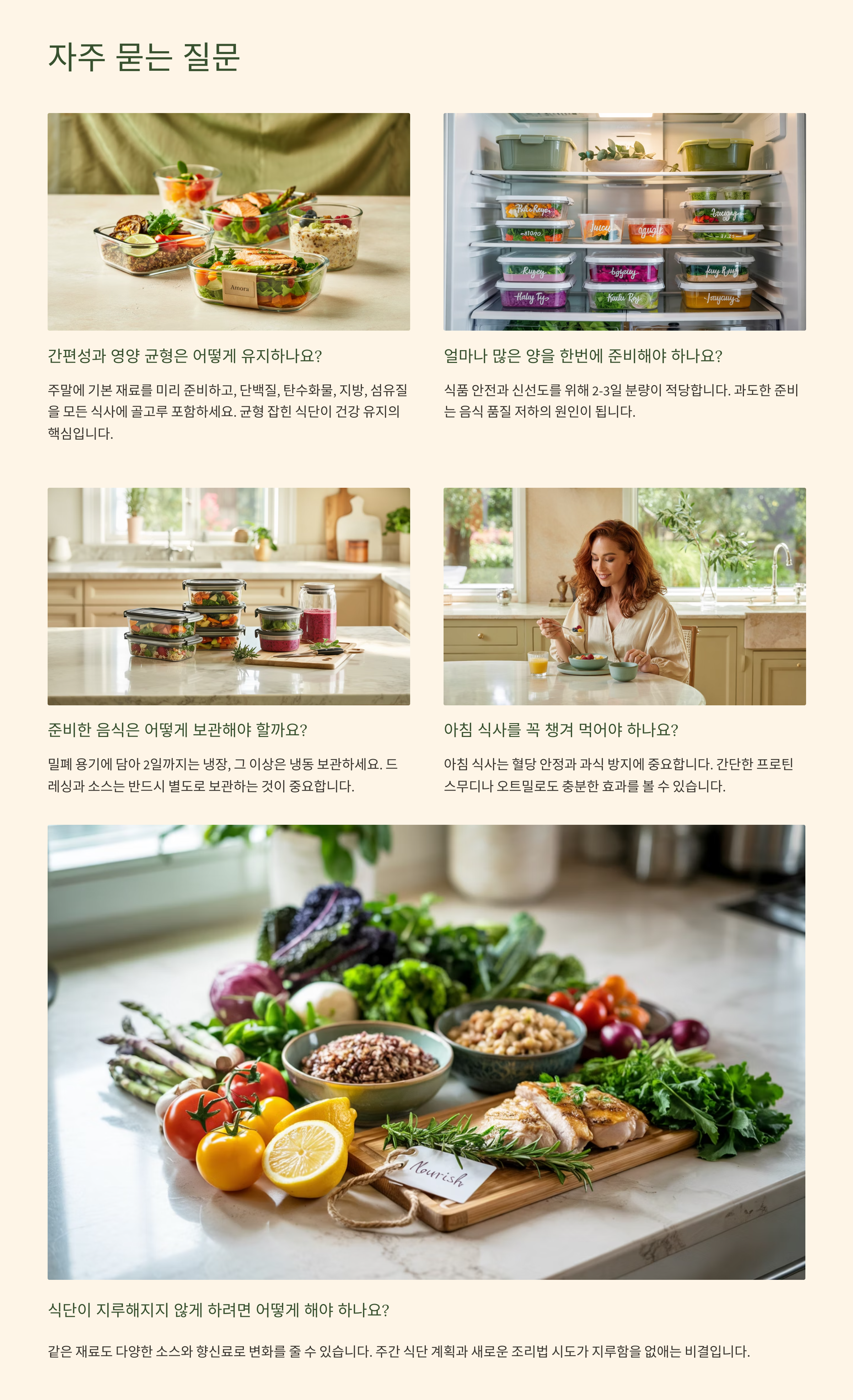간편성과 영양 균형입니다. 15~20분 내외로 준비 가능하고, 필수 영양소를 골고루 포함한 메뉴를 선택하는 것이 지속 가능성의 핵심입니다!
