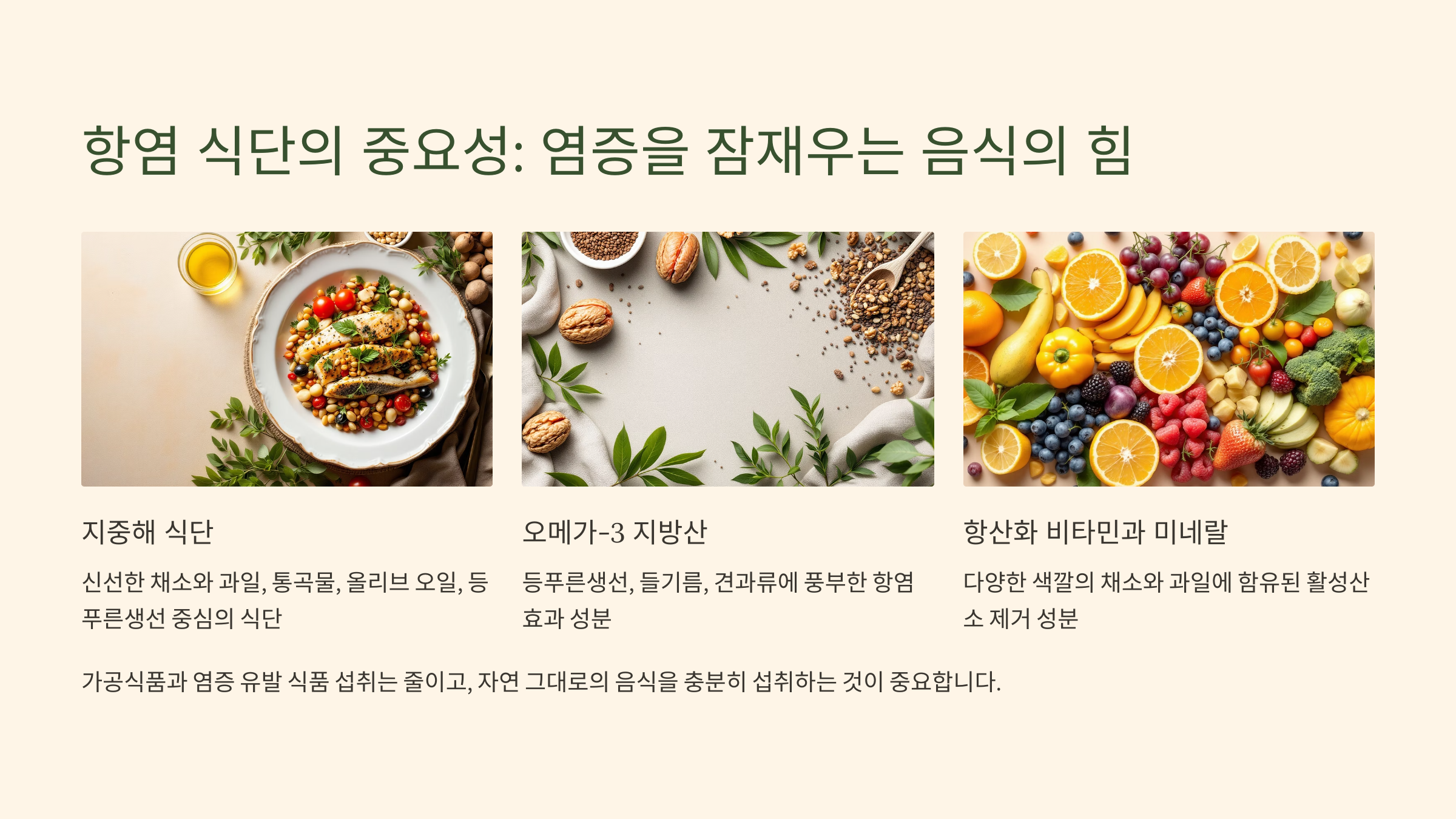 • (1) 항염 식단의 중요성: 염증을 잠재우는 음식의 힘 (개념 중심)