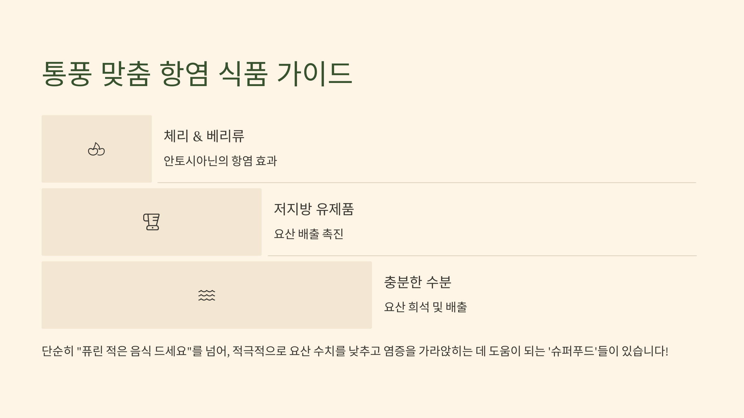 2. 요산 수치 DOWN! 염증 타파! '통풍 맞춤 항염 식품' BEST 5 & 섭취 가이드 🍒