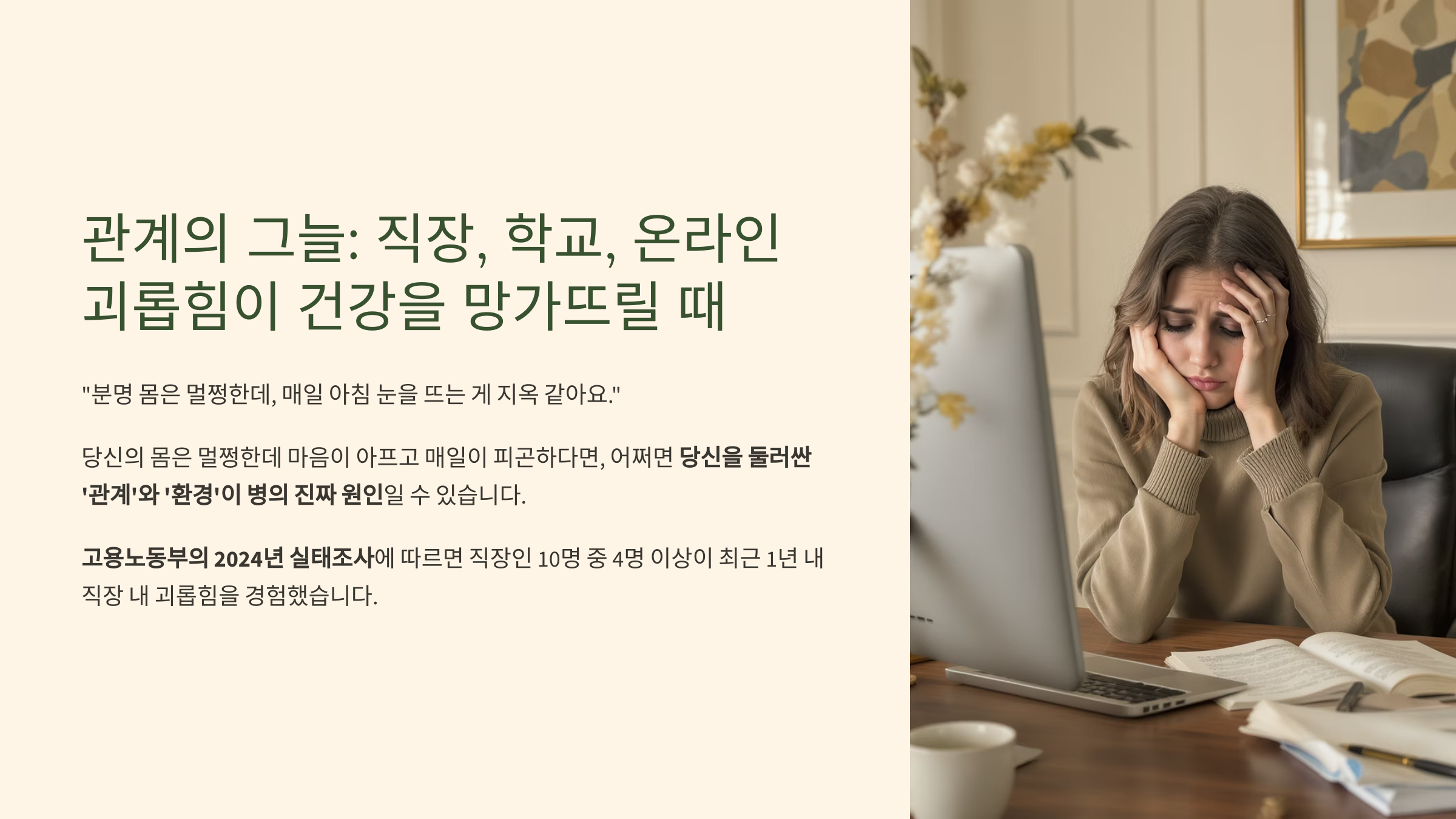 관계의 그늘: 직장, 학교, 온라인 괴롭힘이 건강을 망가뜨릴 때