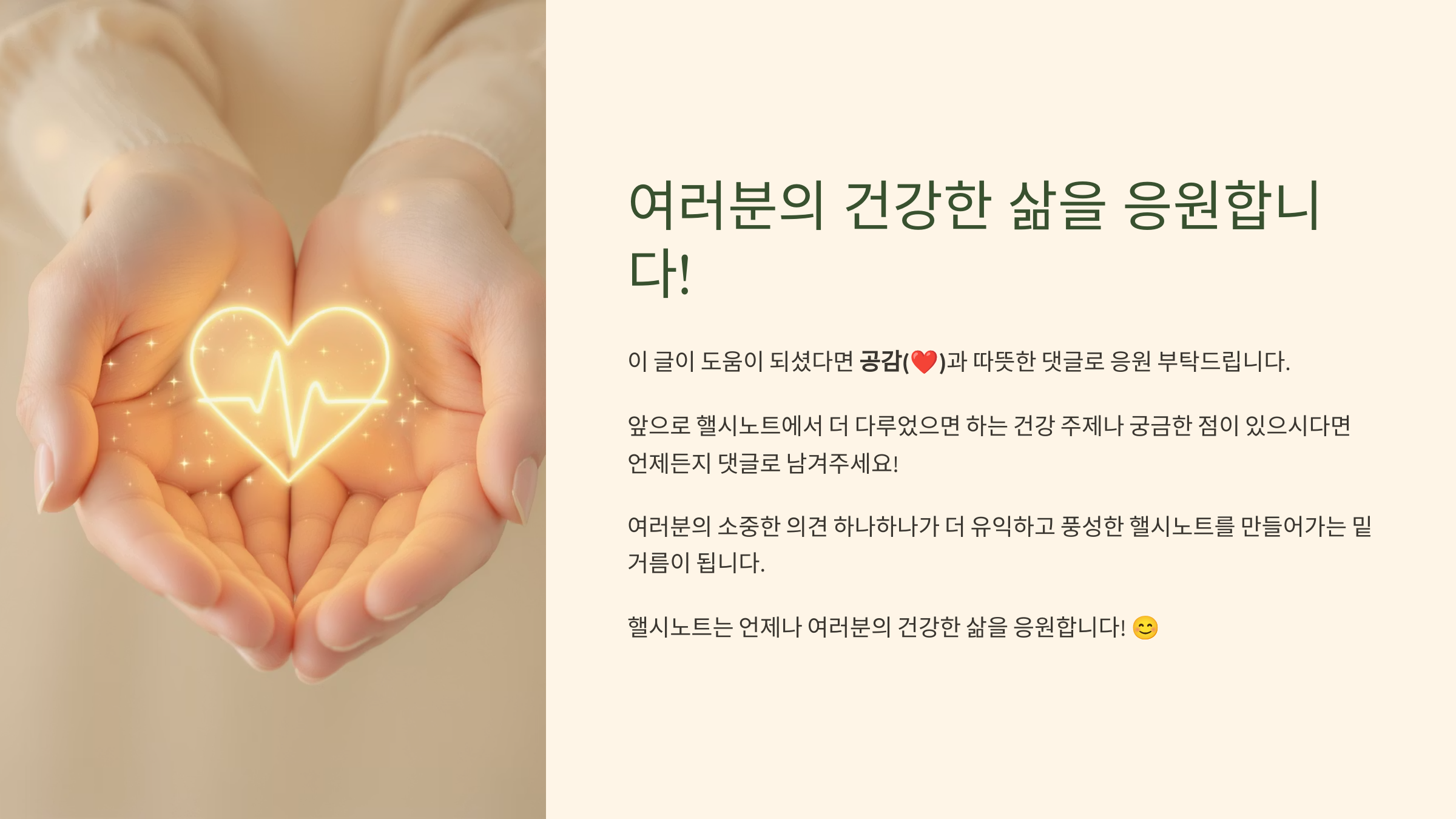 이 글이 도움이 되셨다면 공감(❤️)과 따뜻한 댓글로 응원 부탁드리며, 앞으로 핼시노트에서 더 다루었으면 하는 건강 주제나 궁금한 점이 있으시다면 언제든지 댓글로 남겨주세요!