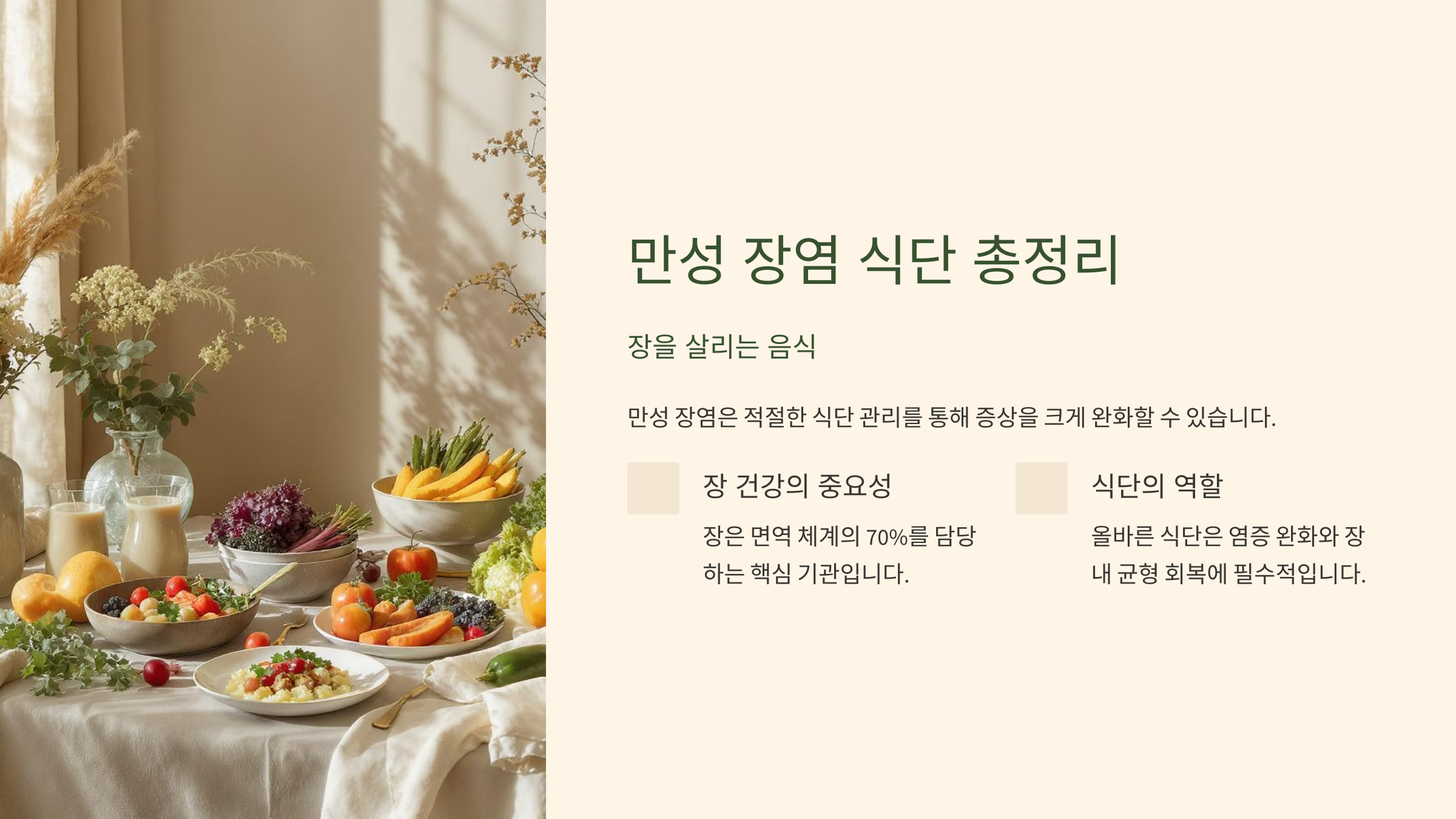 만성 장염 식단 총정리: 장을 살리는 음식 A to Z (좋은 음식, 나쁜 음식, 저포드맵 식단)