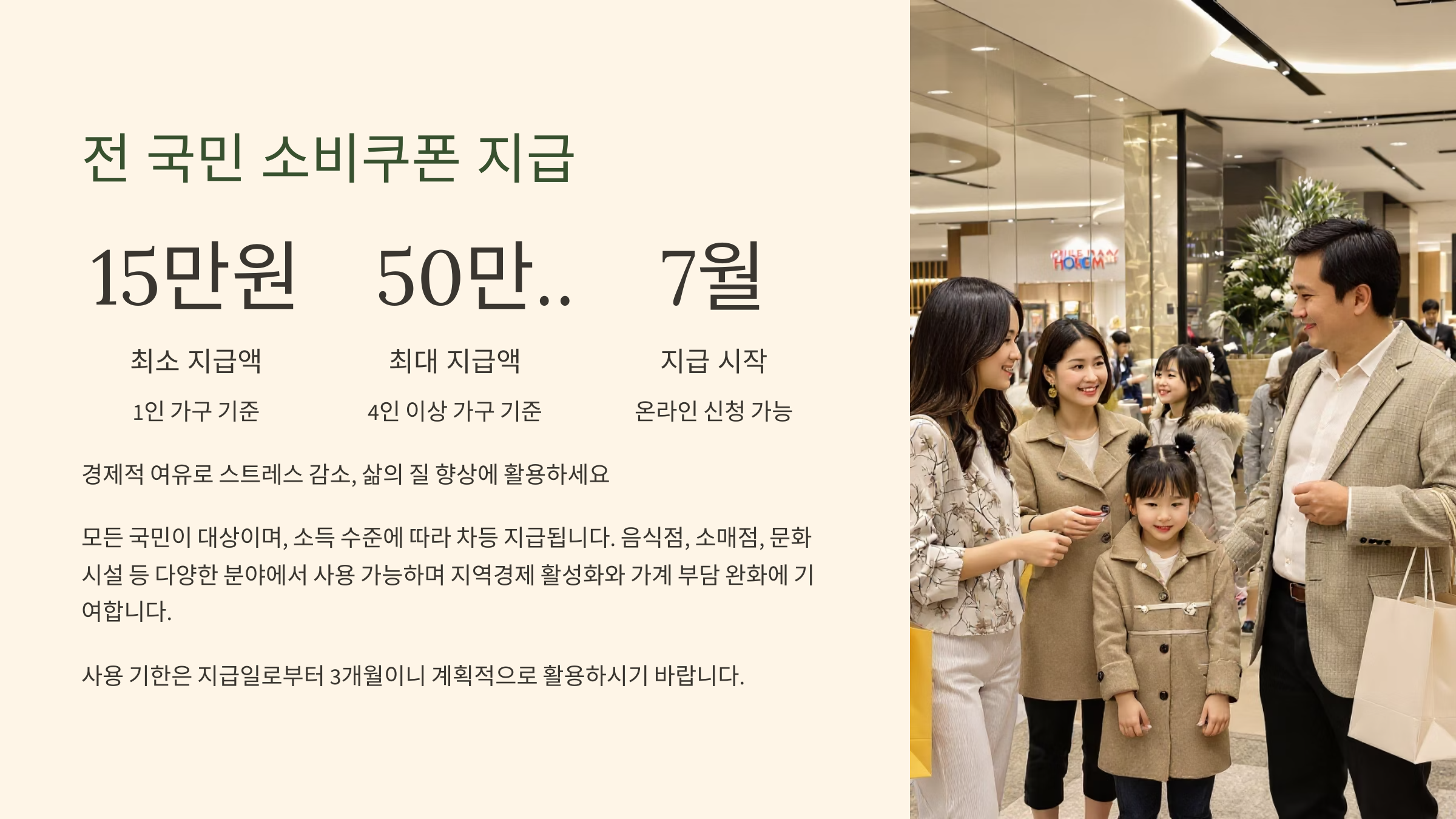 [경제] 전 국민 소비쿠폰 지급 예고, 가계 경제에 활력 불어넣을까?