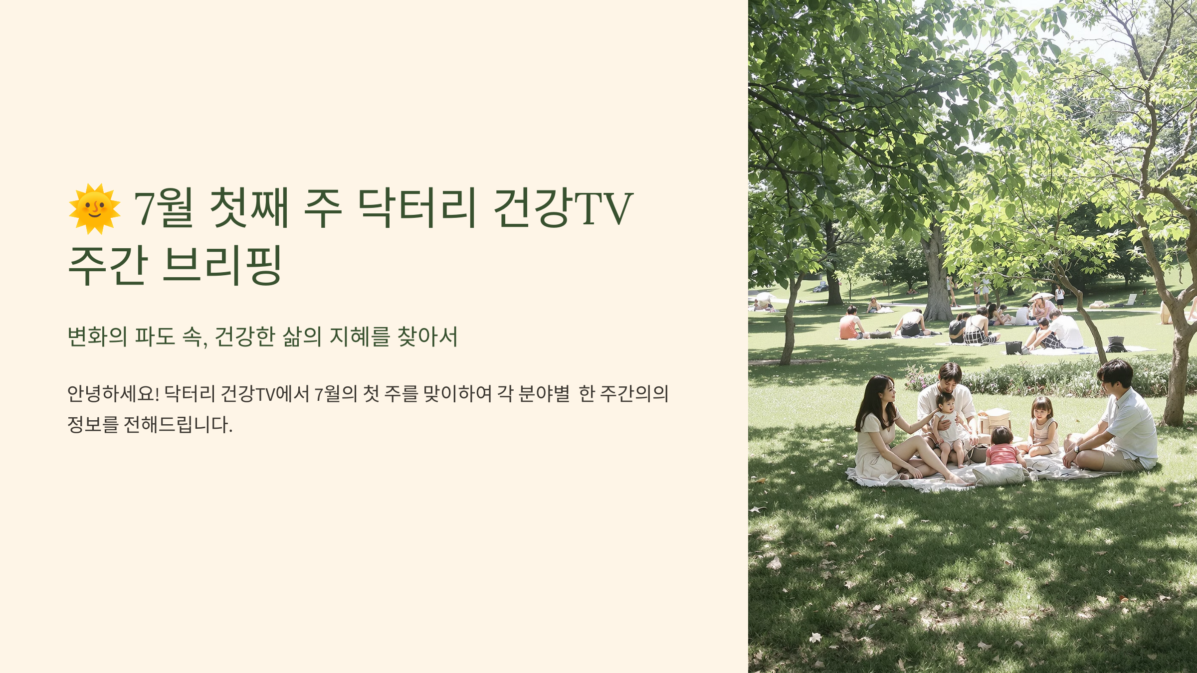 🌞 7월 첫째 주 닥터리 건강TV 주간 브리핑: 변화의 파도 속, 건강한 삶의 지혜를 찾아서