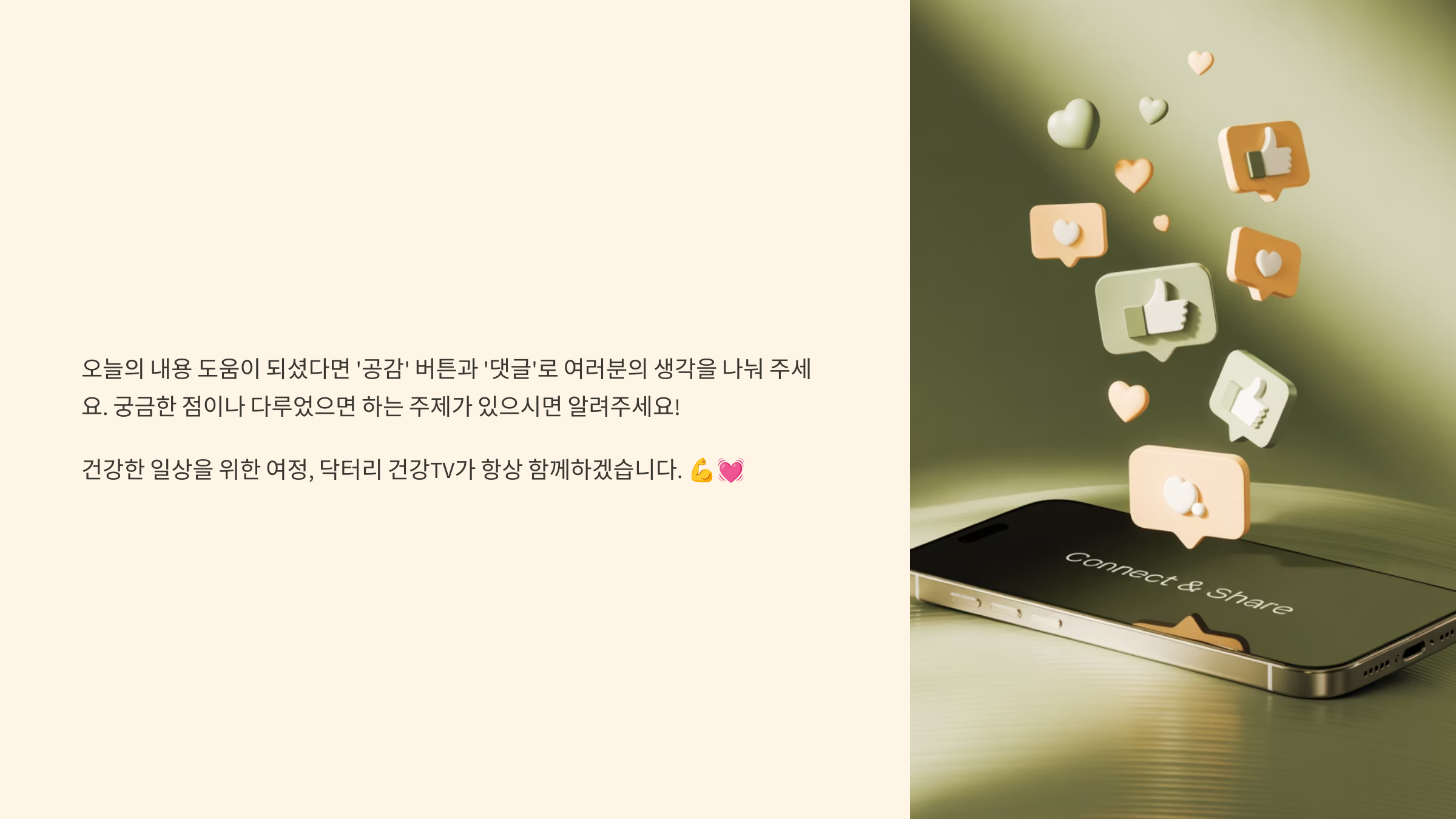 도움이 되셨다면 공감과 댓글 부탁드려요 😊 여러분의 소중한 의견은 닥터리 건강TV가 더 좋은 콘텐츠를 만드는 데 큰 힘이 됩니다.