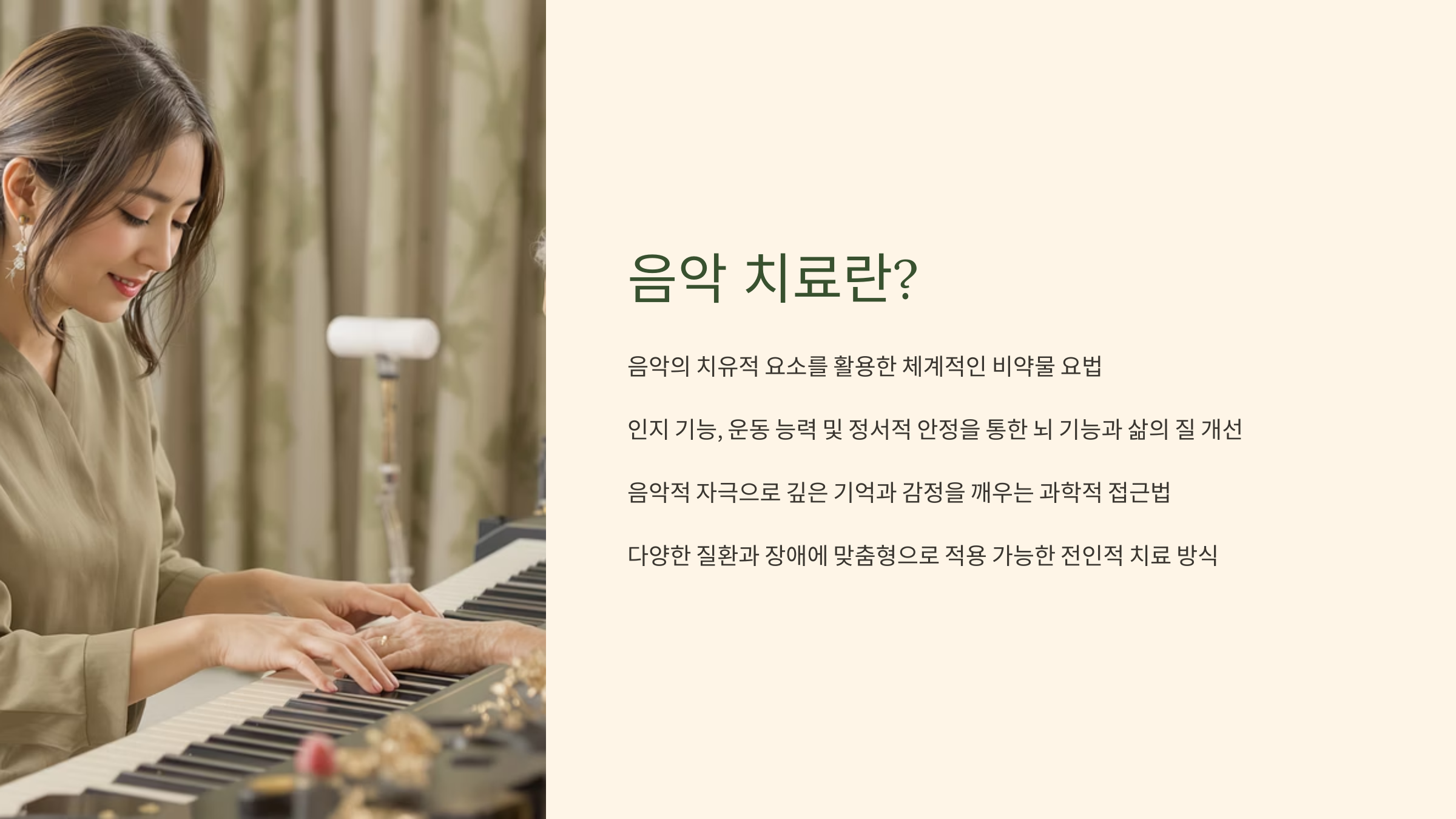 - 🎵 음악 치료란? 치매 치료에 왜 중요한가