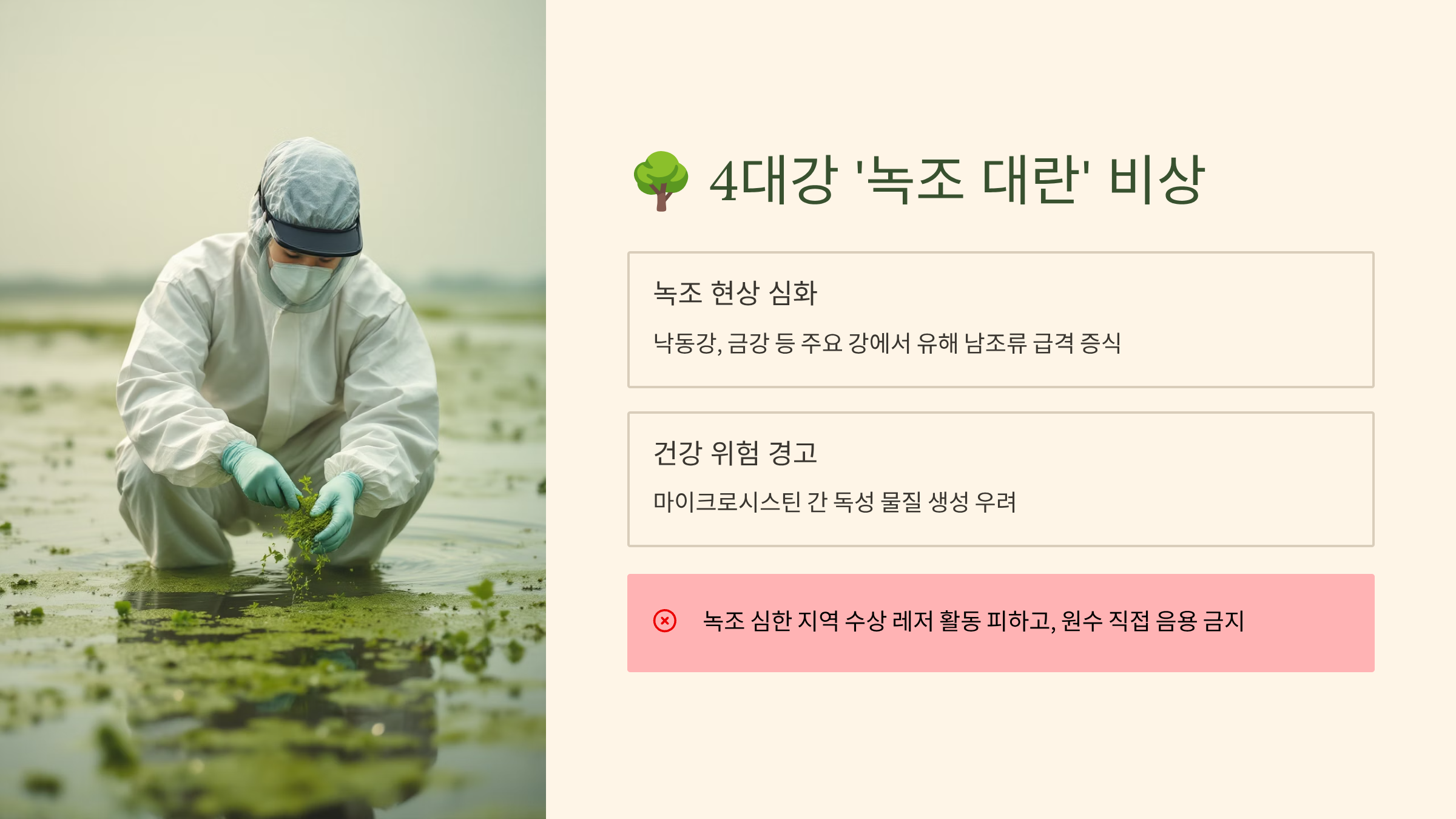 🌳 [환경] 4대강 '녹조 대란' 비상…식수원 안전은?