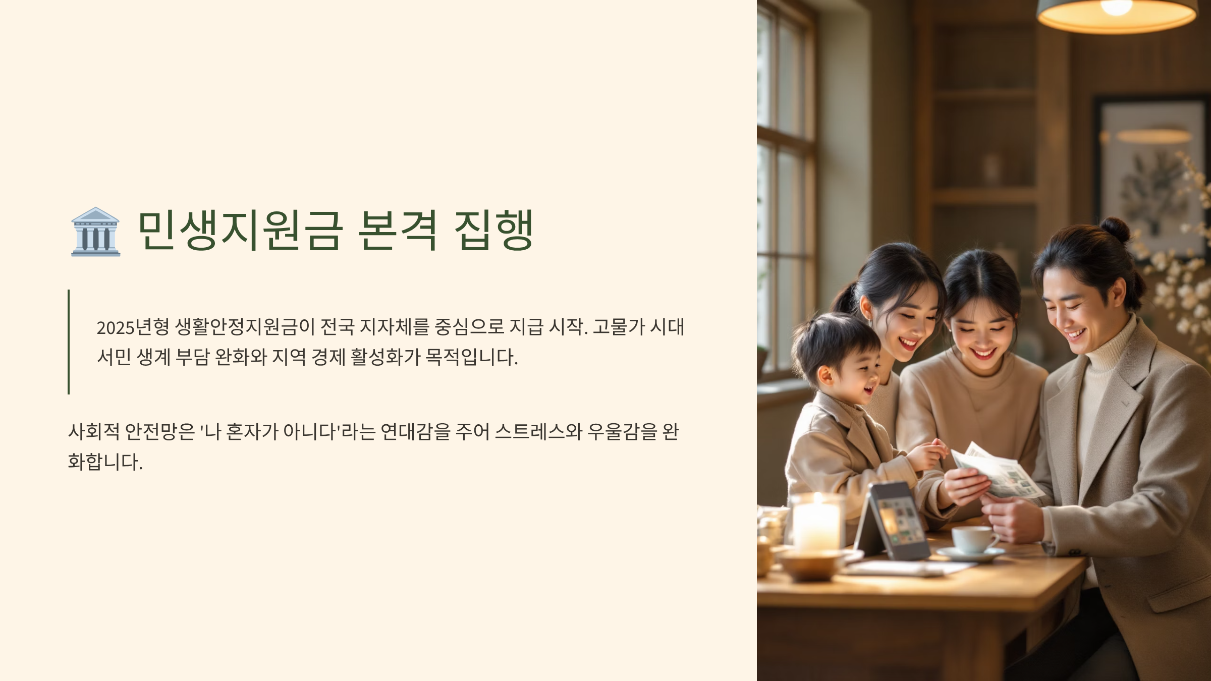 전국 지방자치단체를 중심으로 2025년형 생활안정지원금, 즉 '민생지원금' 지급이 본격적으로 시작되었습니다. 고물가 시대에 서민들의 생계 부담을 덜어주고, 지역 경제를 활성화하기 위한 목적으로, 각 지자체별 기준에 따라 현금 또는 지역화폐 형태로 지급됩니다.