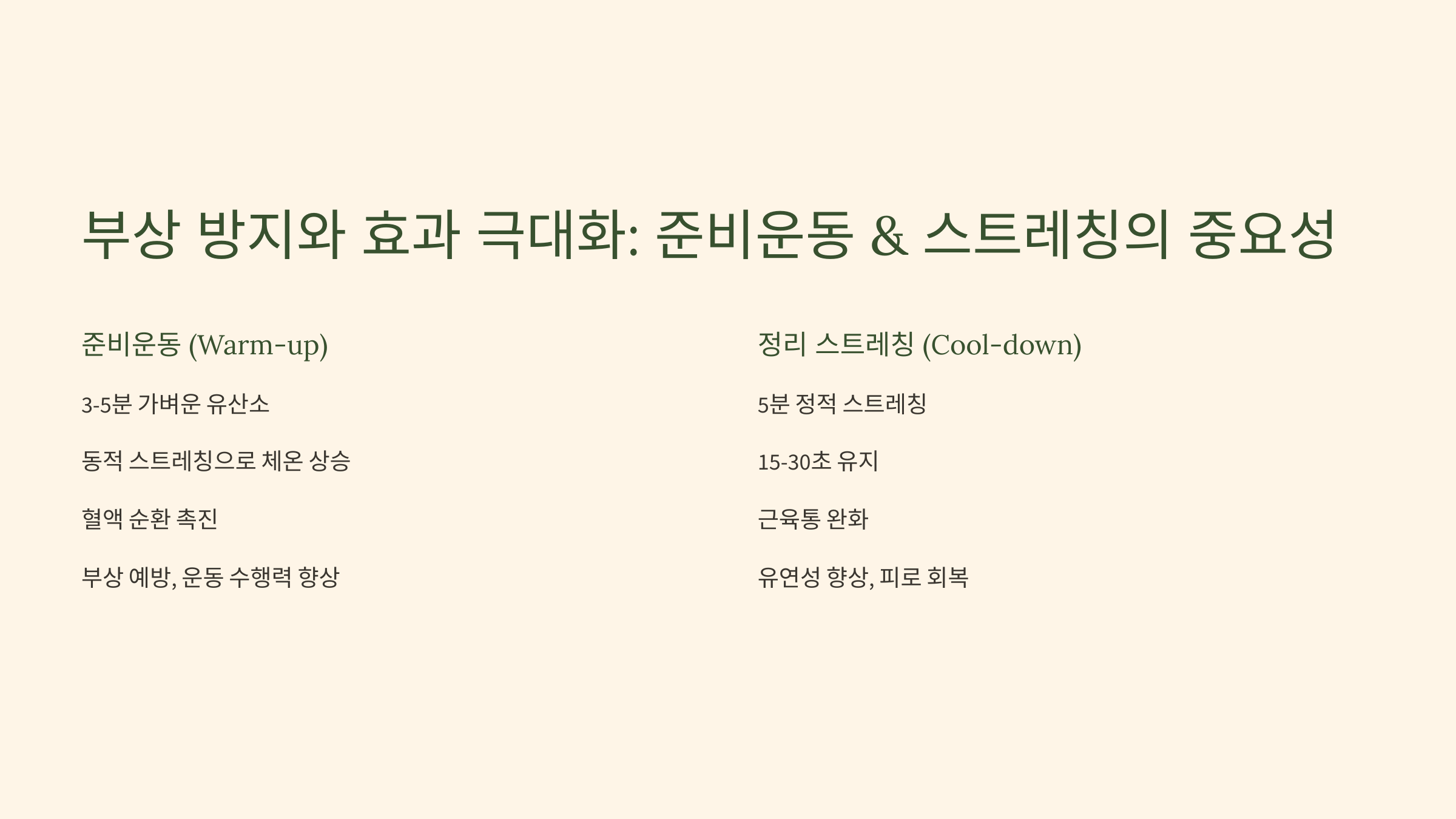- 부상 방지와 효과 극대화: 준비운동 & 스트레칭의 중요성