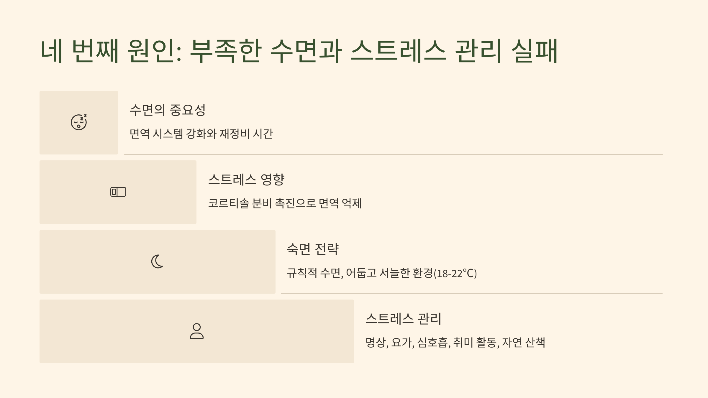 - 네 번째 원인: 부족한 수면과 스트레스 관리 실패