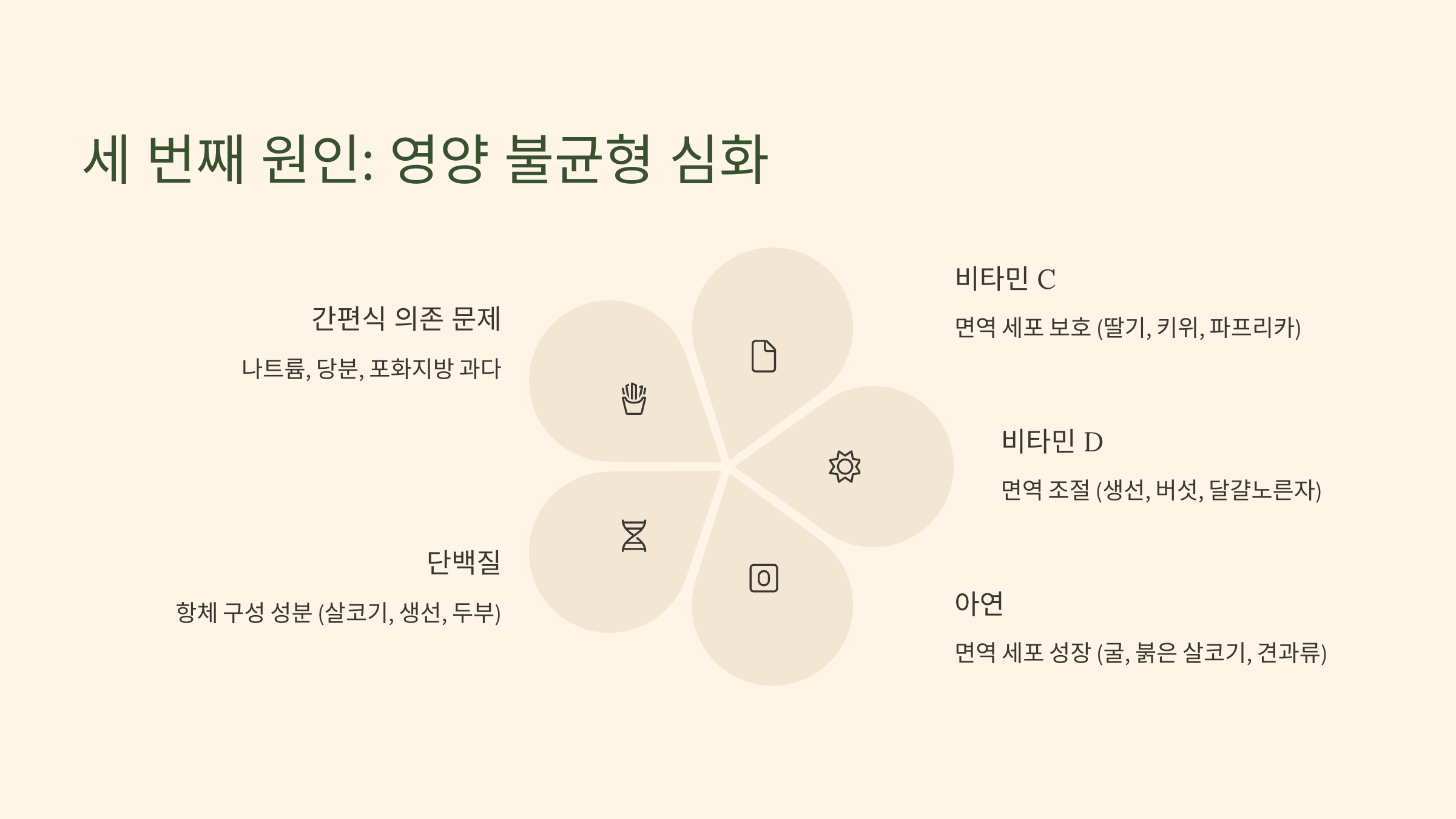- 세 번째 원인: 영양 불균형 심화 (잘못된 식습관)