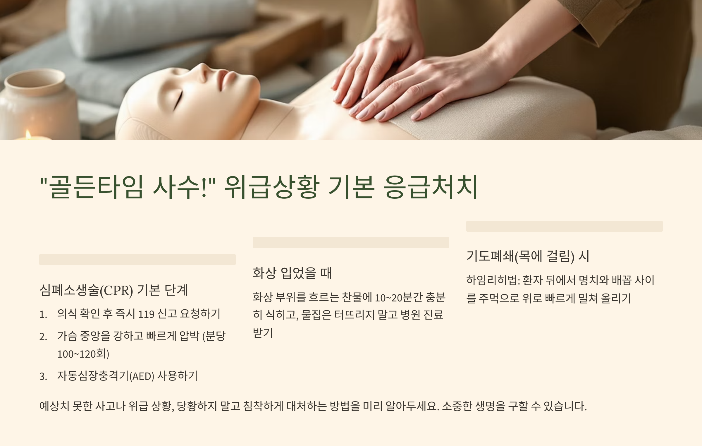 - 인생이 편해지는 세 번째 꿀팁: "골든타임 사수!" 위급상황 기본 응급처치 🚑
