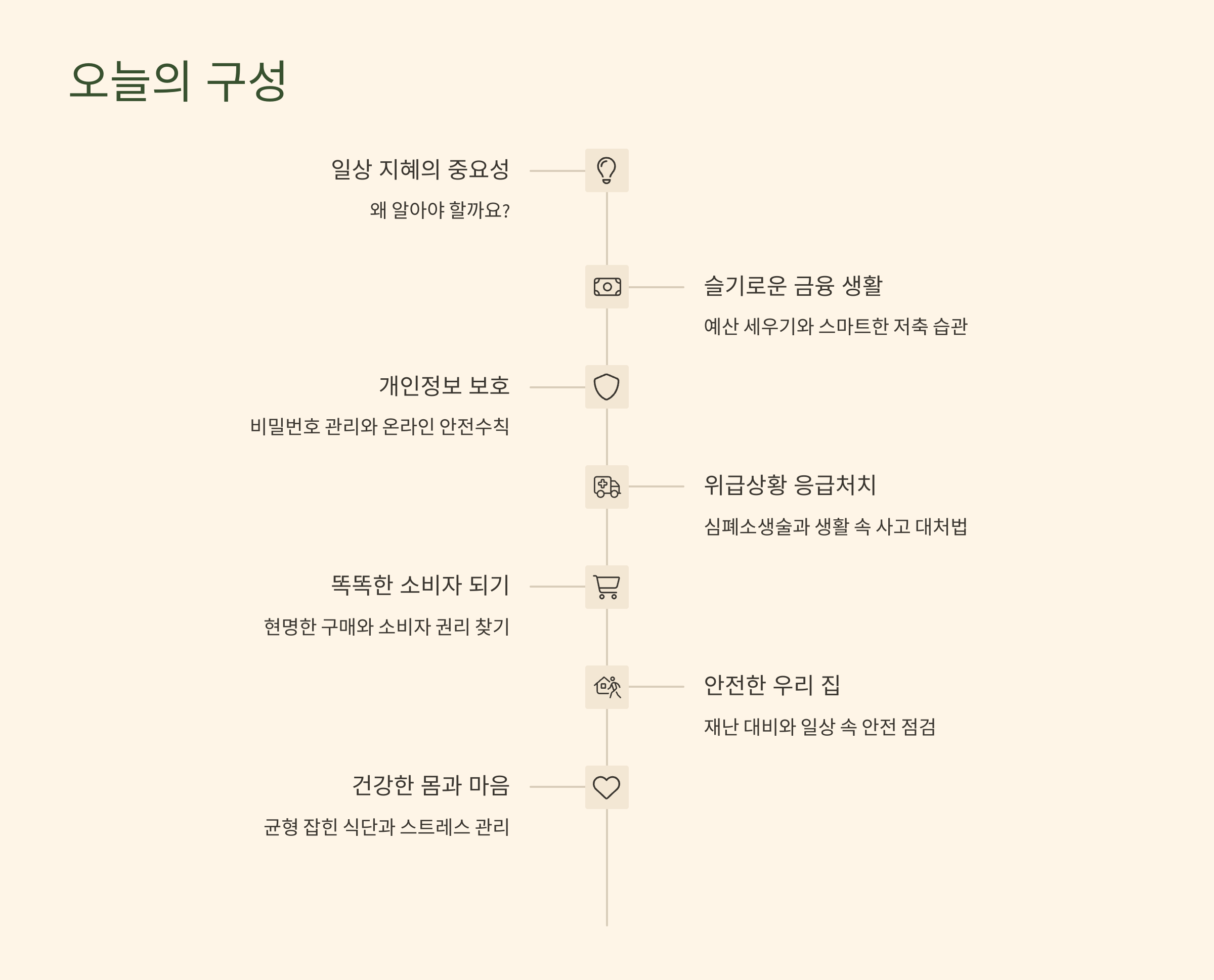 - (1) 미리 대비하는 안전: 가정 내 재난 대비 물품과 계획