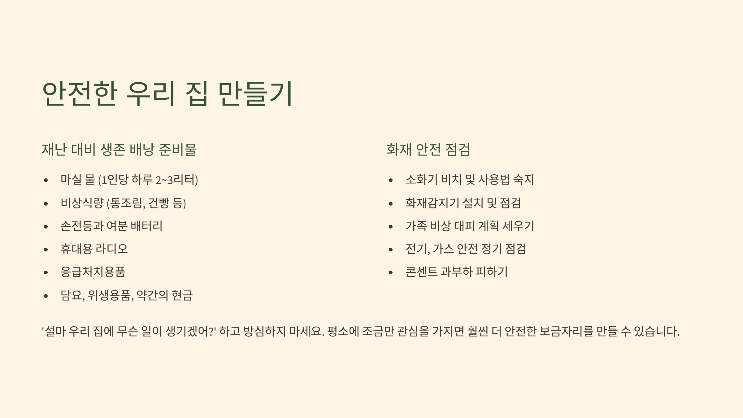 (1) 미리 대비하는 안전: 가정 내 재난 대비 물품과 계획