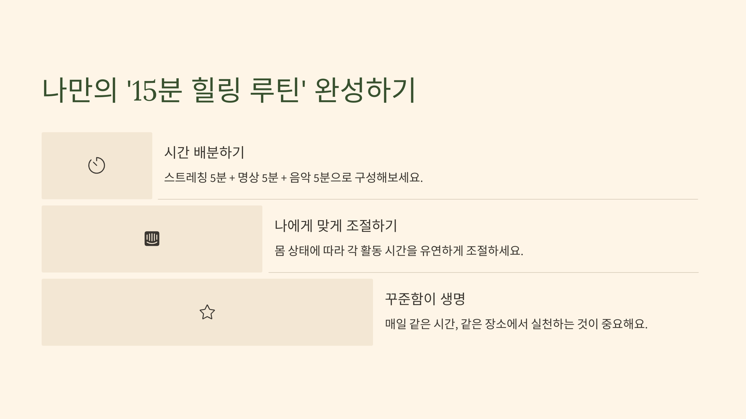 - 나만의 '15분 힐링 루틴' 완성하기 & 꾸준히 실천하는 법 🗓️
