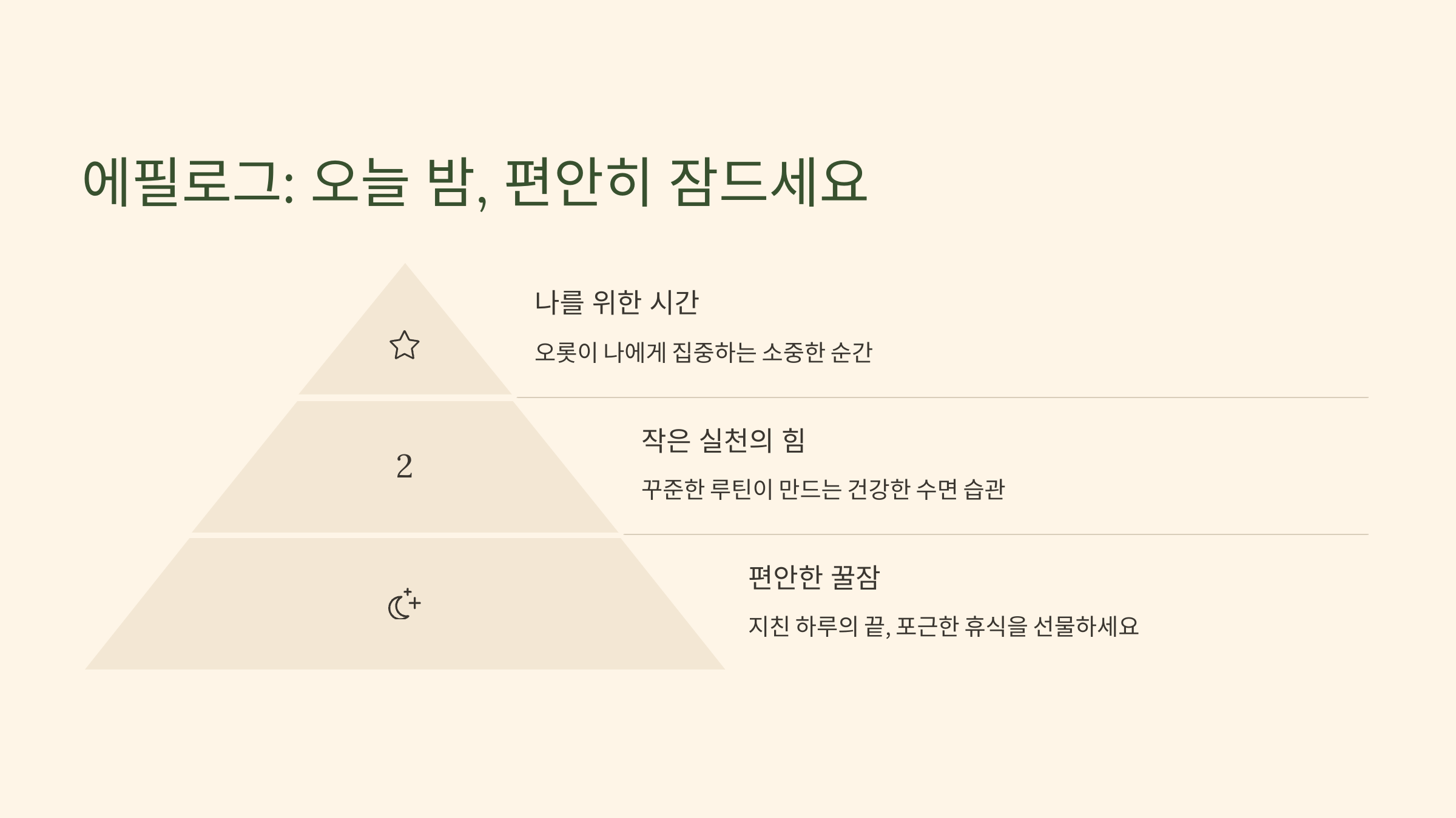 오늘 하루도 정말 고생 많으셨습니다. 잠들기 전, 아주 잠깐의 시간이지만 오롯이 나에게 집중하며 몸과 마음을 토닥여주는 시간을 가져보는 건 어떨까요? 오늘 알려드린 '자기 전 힐링 루틴'이 여러분의 지친 하루 끝에 포근한 위로와 깊은 휴식을 선물할 수 있기를 바랍니다. 거창하지 않아도 괜찮아요. 작은 실천 하나가 당신의 내일을 바꿀 수 있습니다. 부디 오늘 밤, 세상에서 가장 편안한 잠 주무시길 바라요. 😊