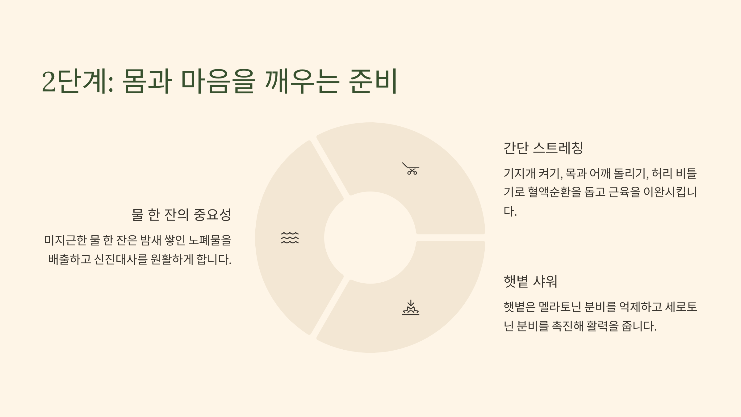 - 2단계: 몸과 마음을 깨우는 준비 - 수분 섭취, 가벼운 움직임, 그리고 햇볕