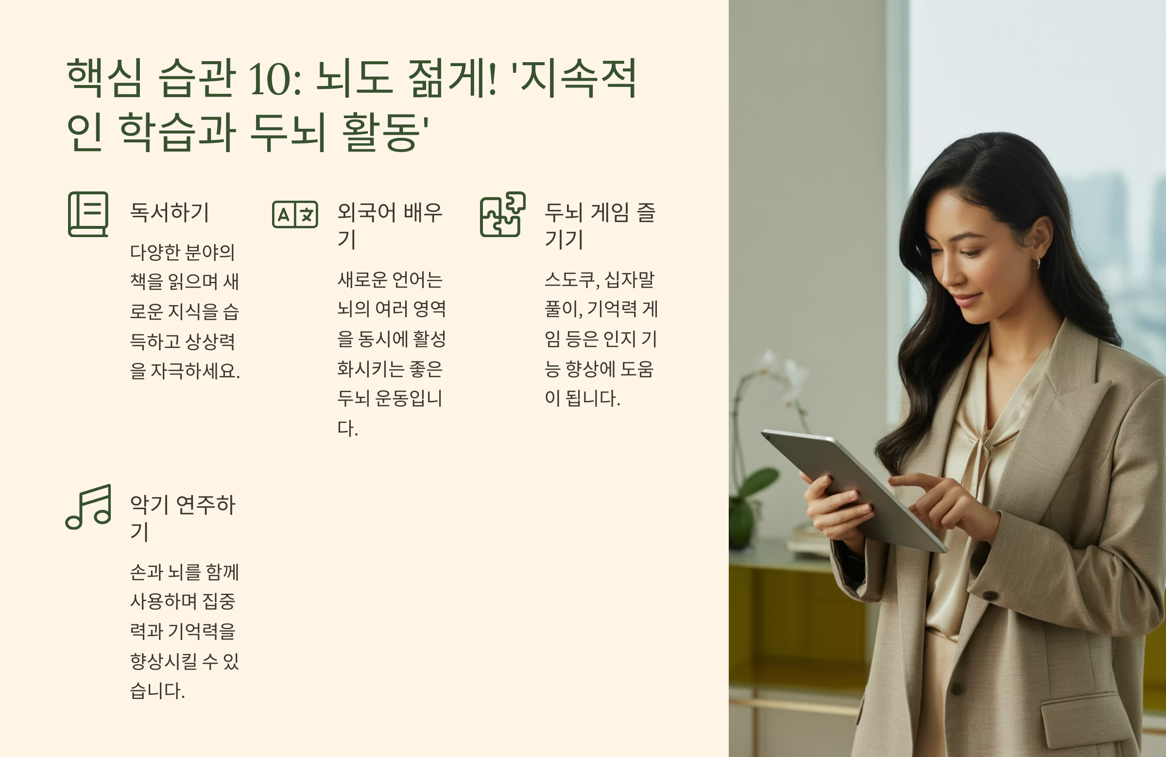 - 핵심 습관 10: 뇌도 젊게! '지속적인 학습과 두뇌 활동' 🧠