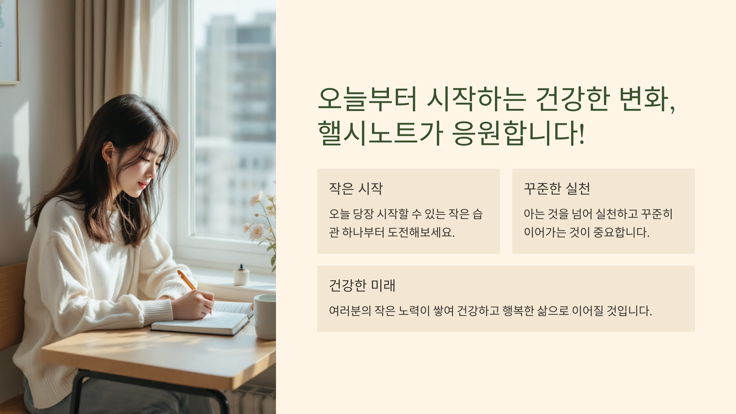 - 에필로그: 오늘부터 시작하는 건강한 변화, 핼시노트가 응원합니다!