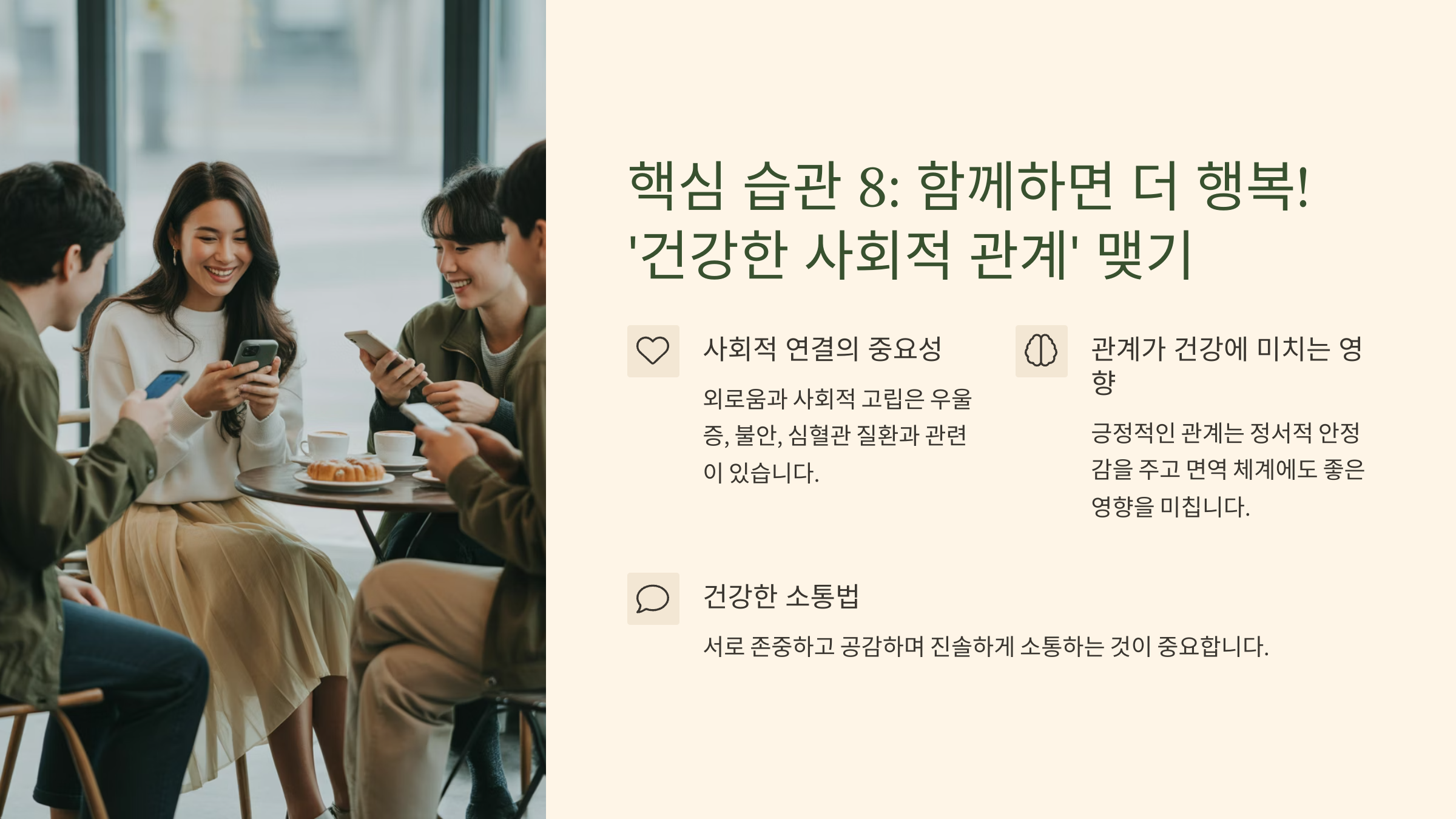 - 핵심 습관 8: 함께하면 더 행복! '건강한 사회적 관계' 맺기 👨👩👧👦