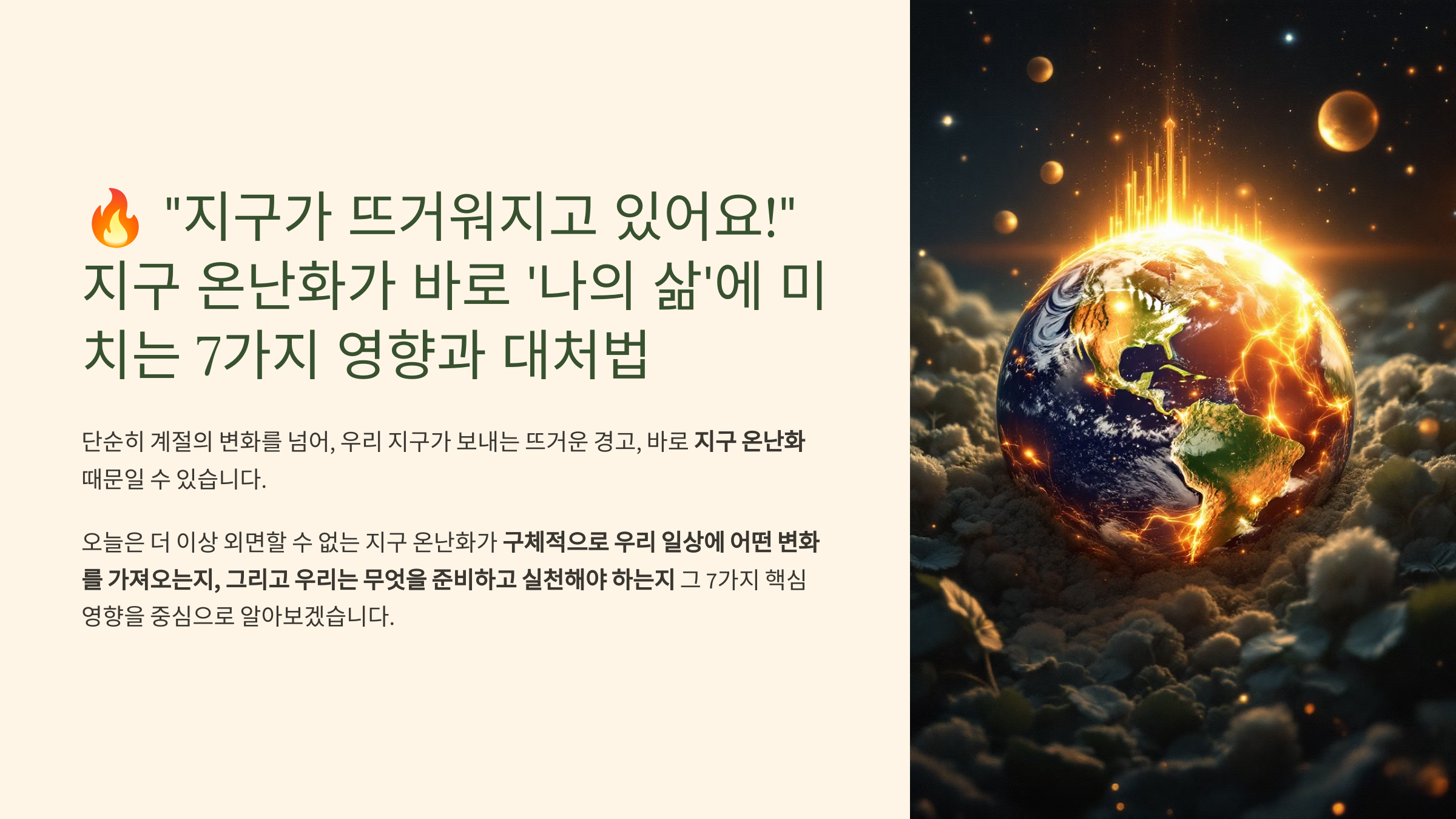 🔥 "지구가 뜨거워지고 있어요!" 지구 온난화가 바로 '나의 삶'에 미치는 7가지 영향과 대처법
