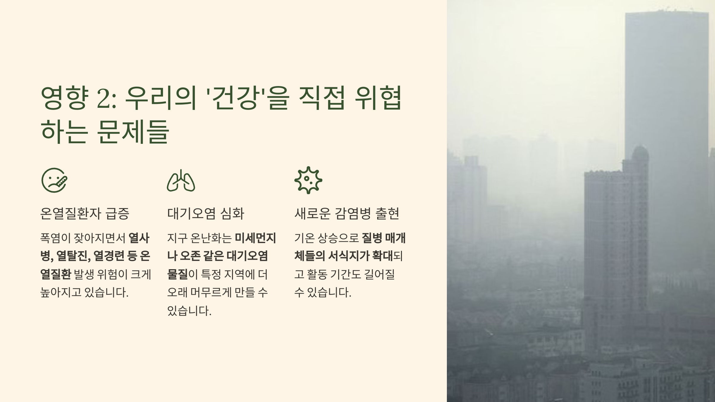 - 영향 2: 우리의 '건강'을 직접 위협하는 문제들 😷