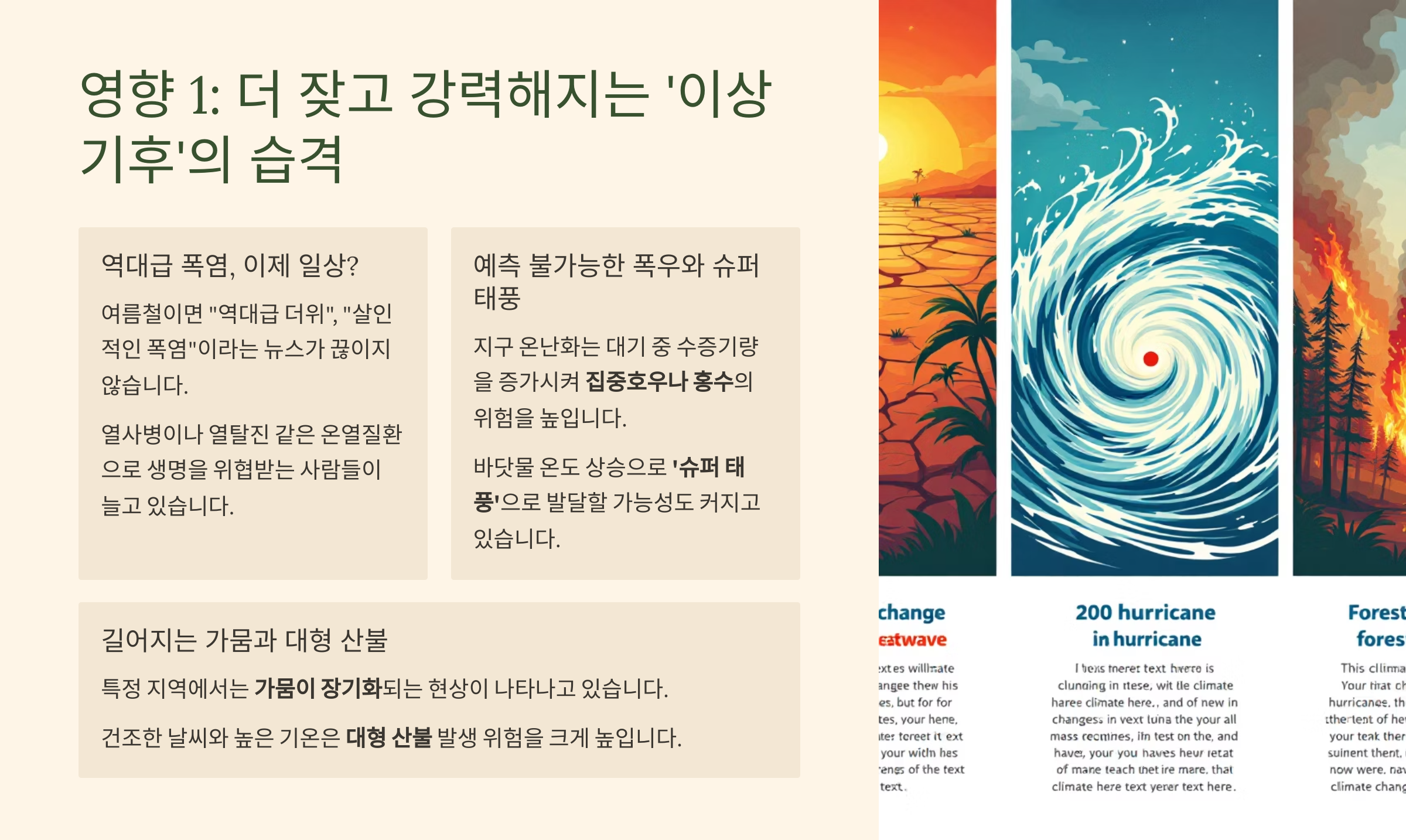 - 영향 1: 더 잦고 강력해지는 '이상기후'의 습격 ⛈️