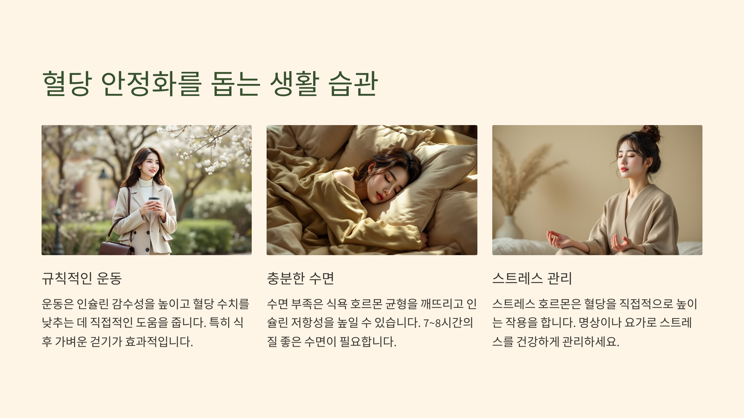 - 혈당 안정화를 돕는 생활 습관의 중요성 (개념 이해 중심)