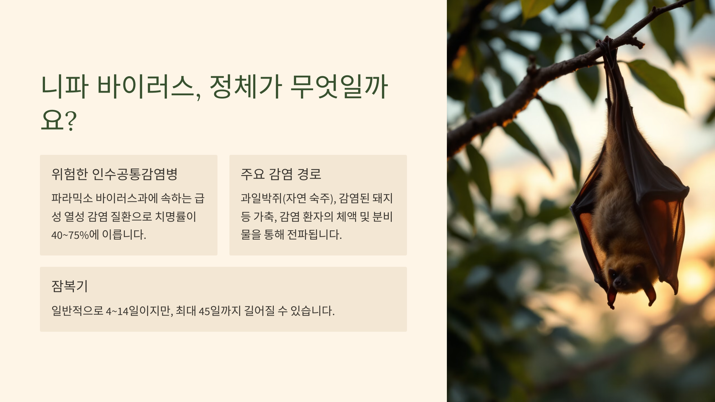 1. 니파 바이러스(Nipah Virus), 정체가 무엇일까요? (기본 정보) 🦠