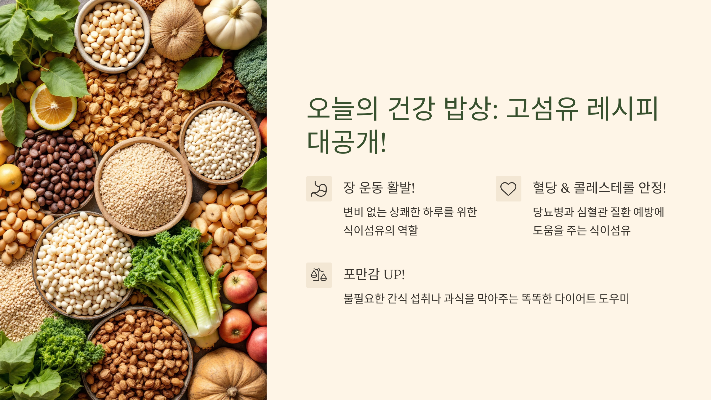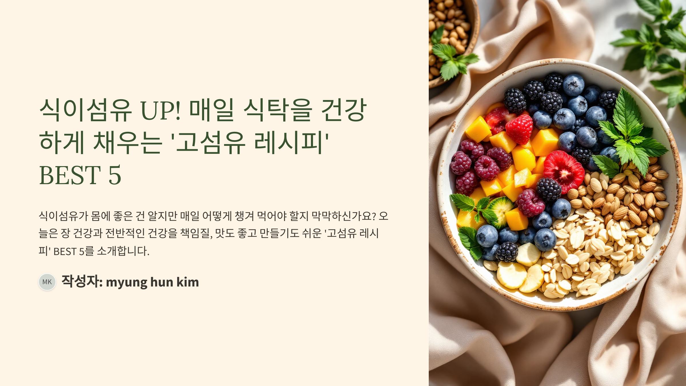 🥗 식이섬유 UP! 매일 식탁을 건강하게 채우는 '고섬유 레시피' BEST 5 (맛&건강 동시 만족!)
