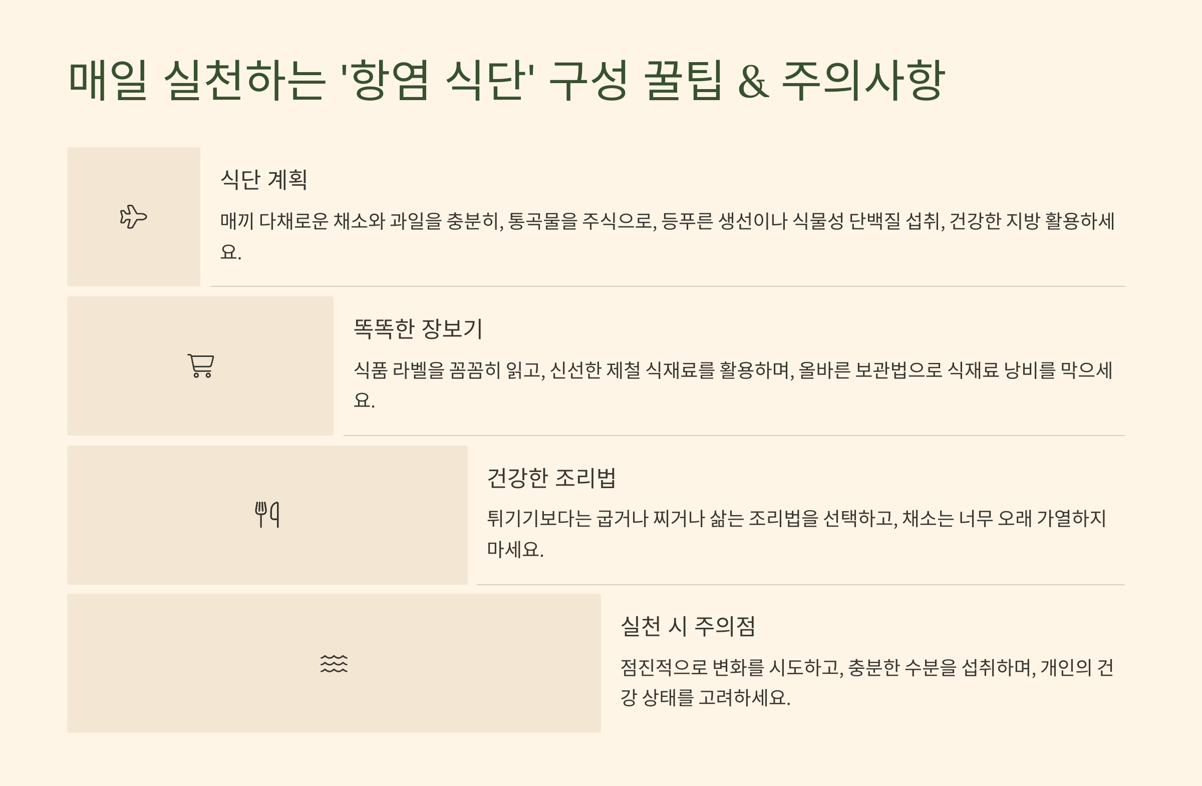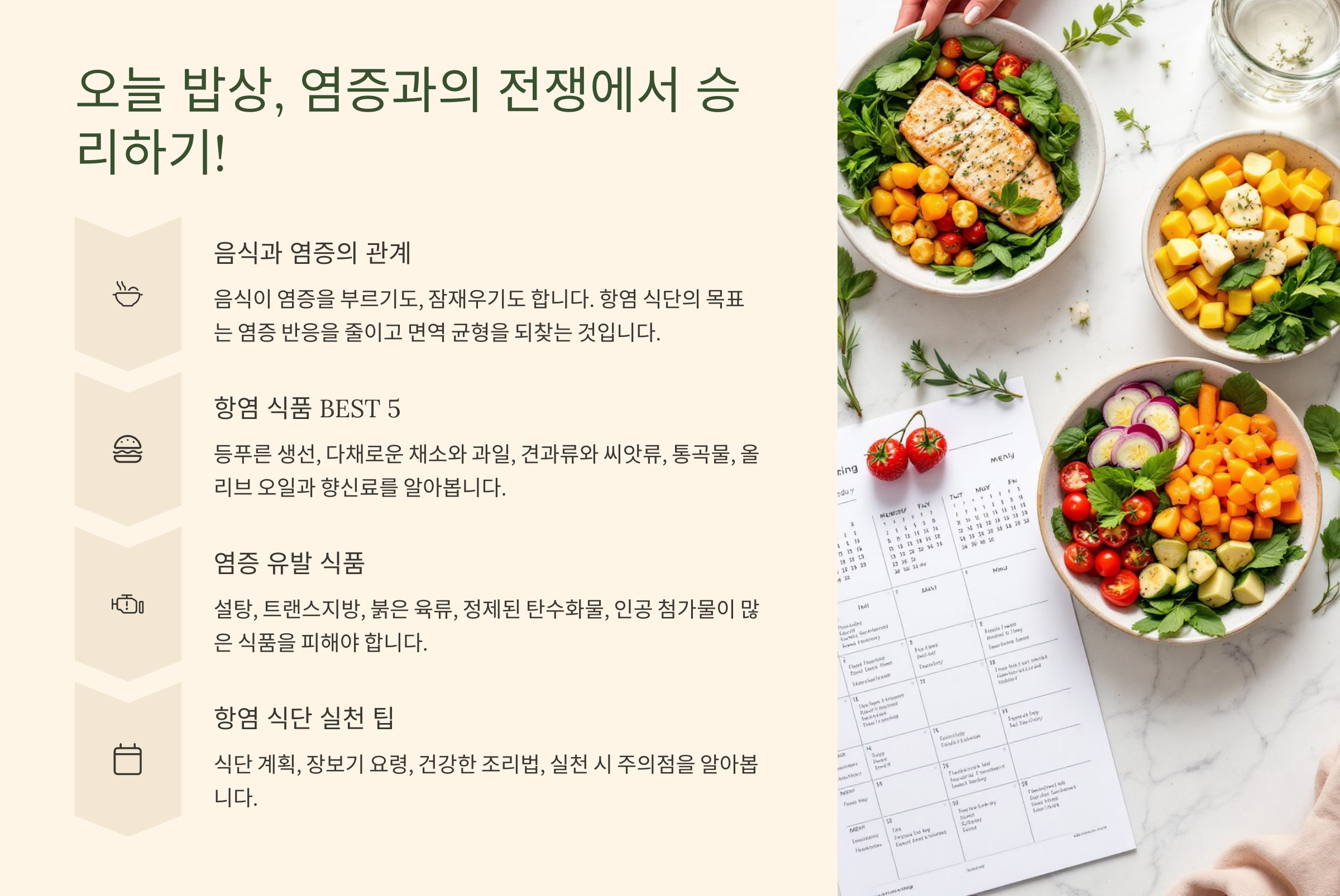 - 매일 실천하는 '항염 식단' 구성 꿀팁 & 주의사항 🗓️