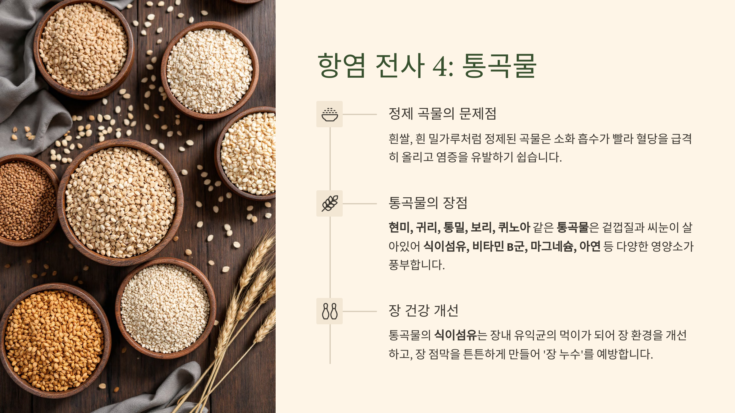 - (4) 항염 전사 4: 통곡물 (식이섬유 풍부! 혈당 안정과 장 건강까지!)