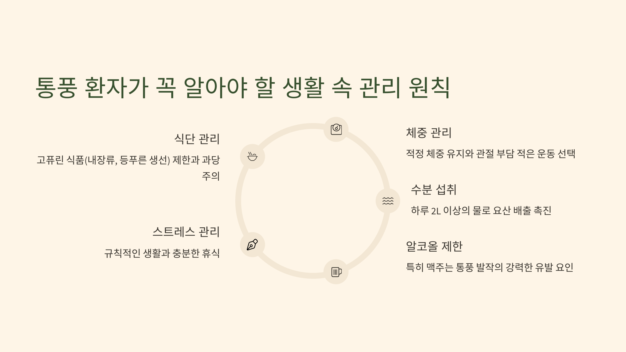 5. 통풍 환자가 꼭 알아야 할 '생활 속 관리 원칙' (단순 상식을 넘어선 핵심 정보)