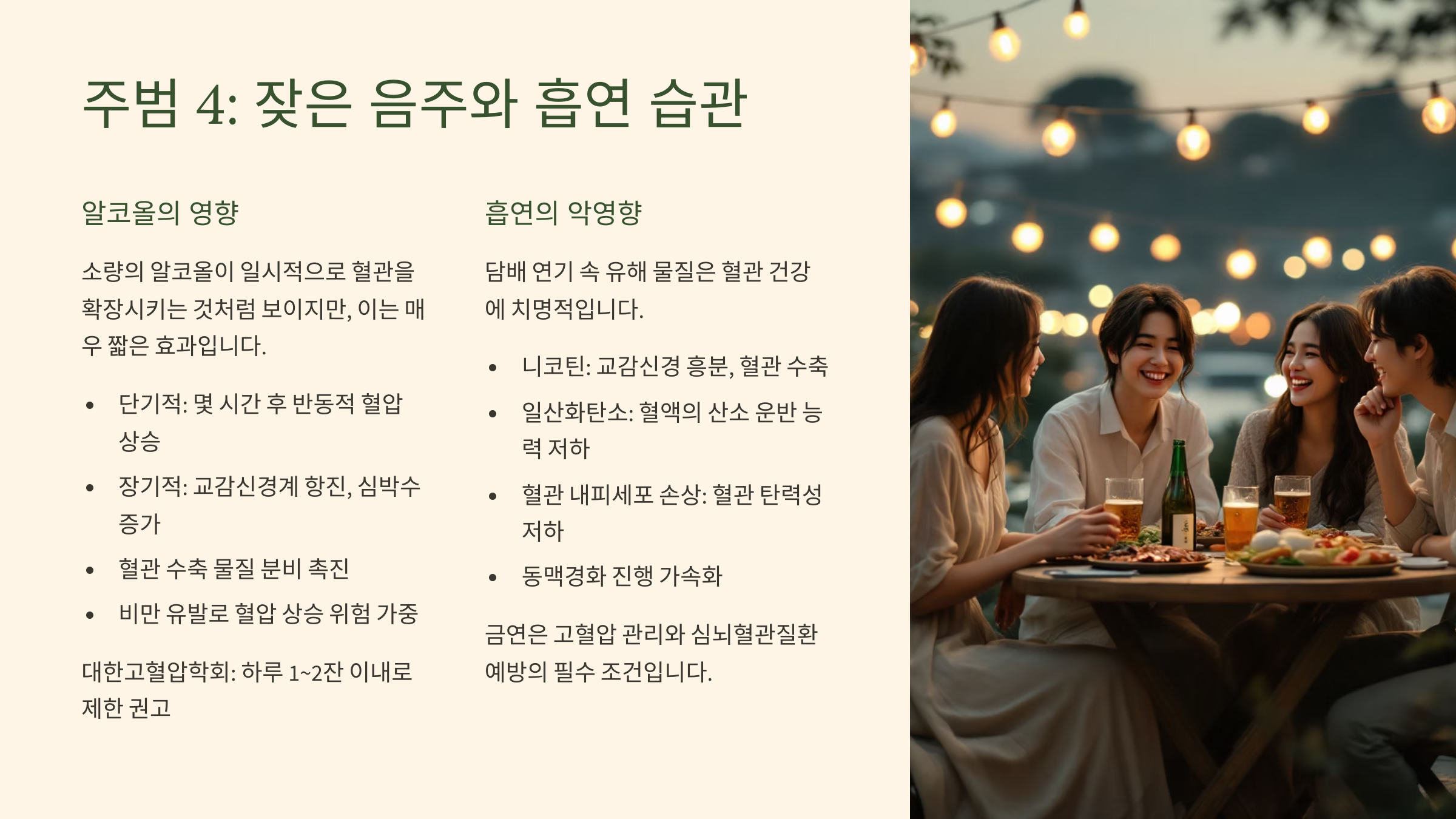 - (4) 주범 4: 잦은 '음주'와 끊지 못하는 '흡연' 습관 (혈관 건강의 최대 적)