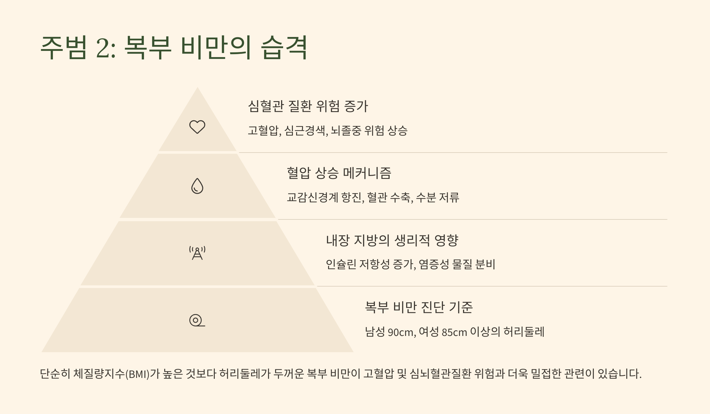 - (2) 주범 2: 비만, 특히 '복부 비만(내장 지방)'의 습격 (단순 체중 문제가 아니다!)