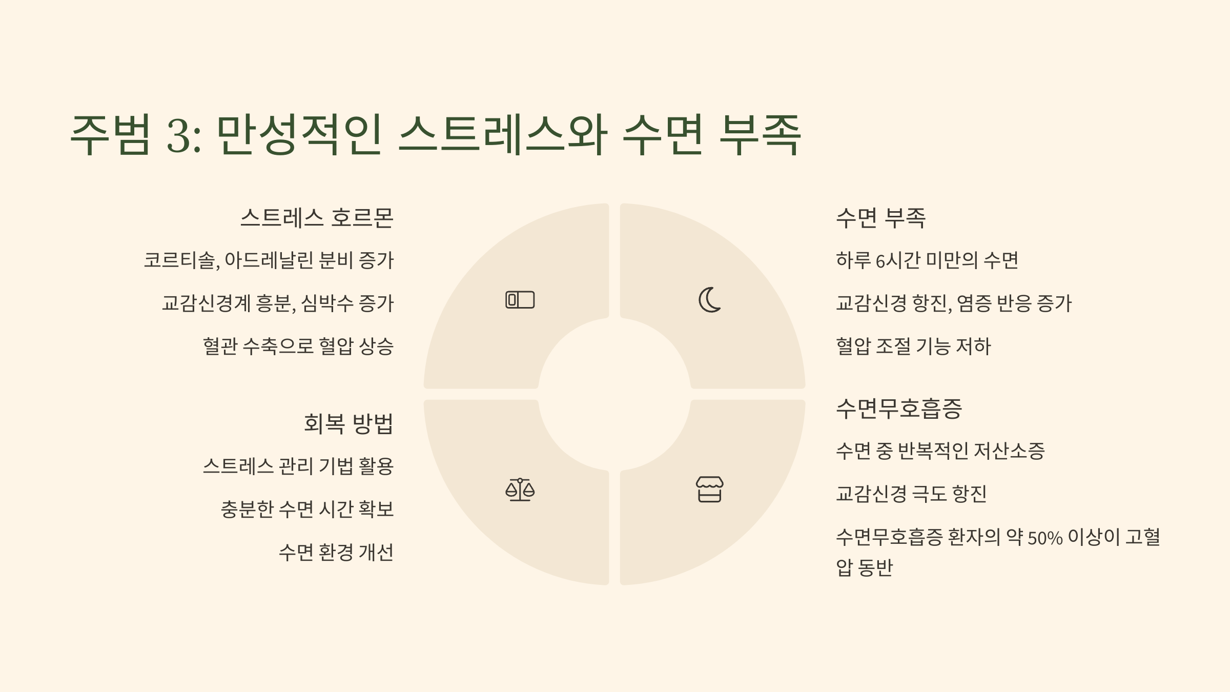 - (3) 주범 3: 만성적인 '스트레스'와 수면 부족 (현대인의 그림자)
