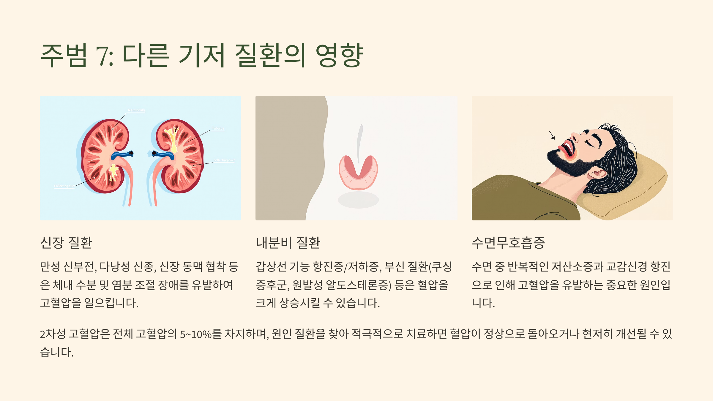(7) 주범 7: 다른 '기저 질환'의 영향 (2차성 고혈압의 가능성, 전체 고혈압의 5~10%)