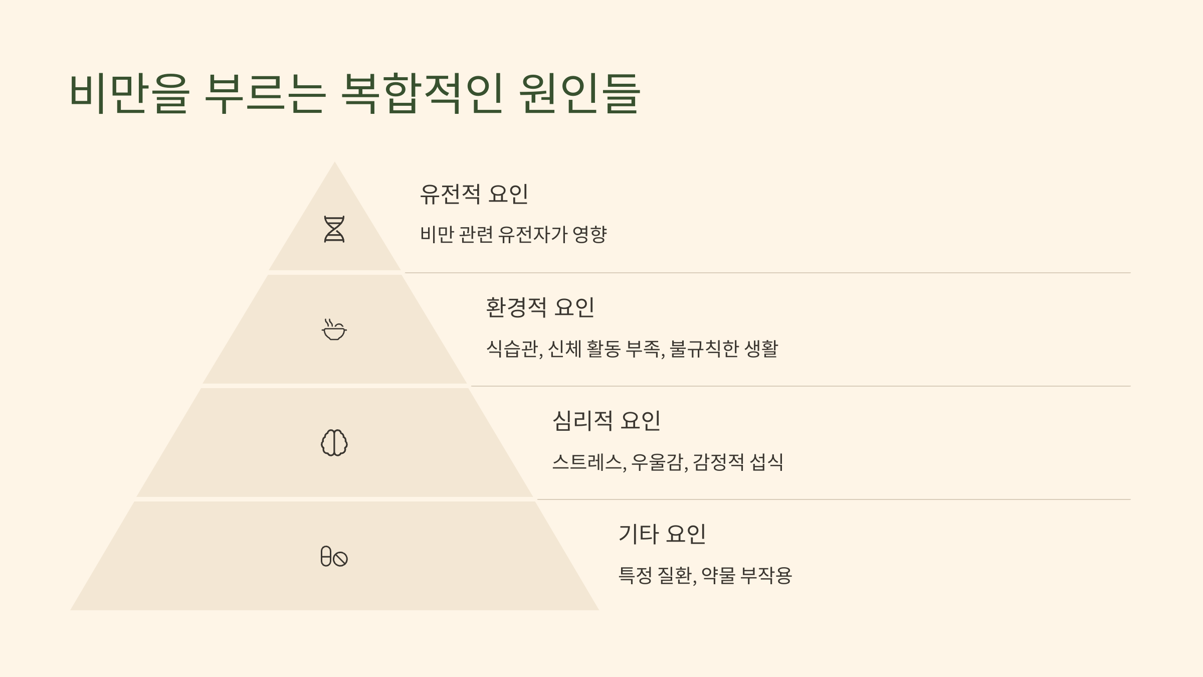 - (3) 사회경제적 및 심리적 요인: 스트레스, 우울감, 사회적 환경과 비만의 연결고리