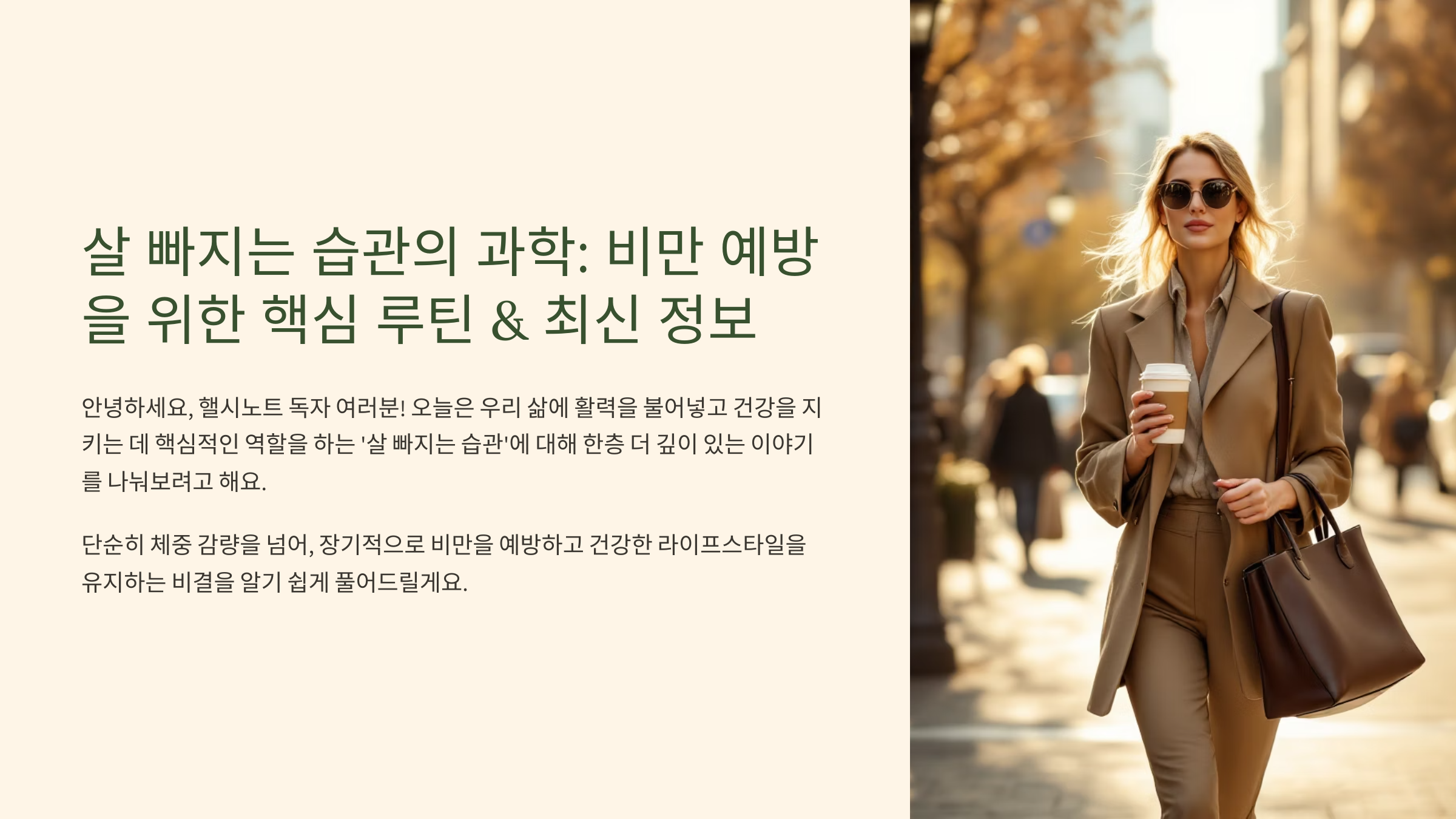 안녕하세요, 핼시노트 독자 여러분! 😊 오늘은 우리 삶에 활력을 불어넣고 건강을 지키는 데 핵심적인 역할을 하는 '살 빠지는 습관'에 대해 한층 더 깊이 있는 이야기를 나눠보려고 해요. 단순히 체중 감량을 넘어, 장기적으로 비만을 예방하고 건강한 라이프스타일을 유지하는 비결, 혹시 너무 뻔하다고 생각하셨나요? 하지만 오늘 핼시노트에서는 2023년 이후의 최신 연구와 공신력 있는 기관의 자료를 바탕으로, 일반적인 상식을 뛰어넘는 핵심 루틴과 흥미로운 사실들을 알기 쉽게 풀어드릴게요. 복잡하고 어려운 방법 대신, 일상에서 쉽게 실천하며 삶의 질을 높일 수 있는 방법들을 준비했으니 끝까지 함께해주세요! 🚀