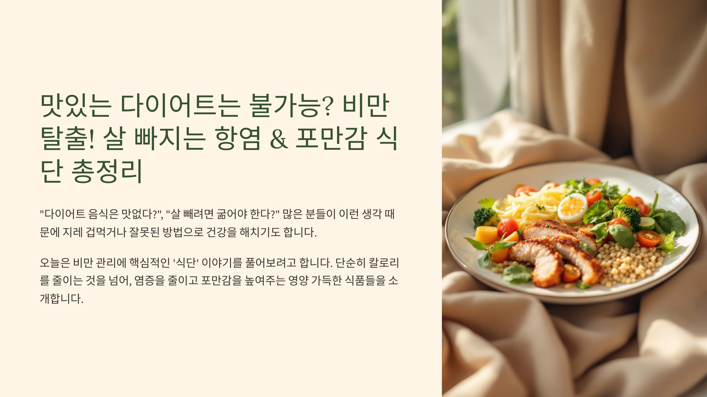 - 맛있게 날씬해지자! 비만 관리 '항염 & 포만감' 레시피 & 식단 구성 팁 👩🍳