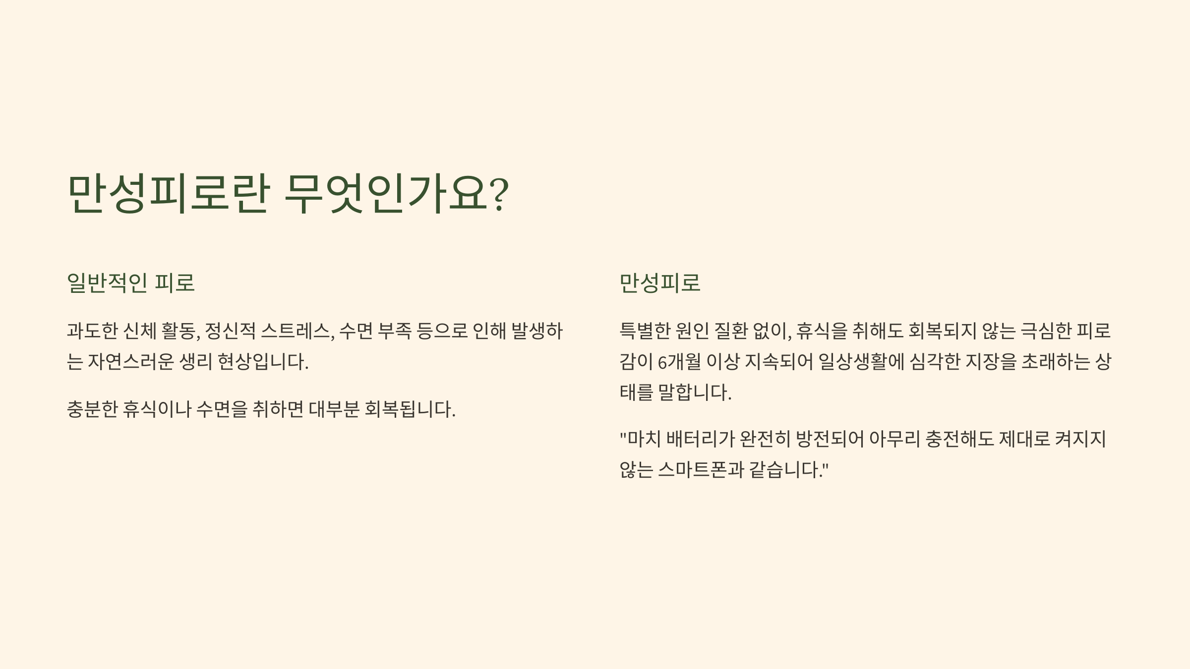 1. 만성피로란 무엇인가요? (단순 피로 vs. 질병으로서의 만성피로)