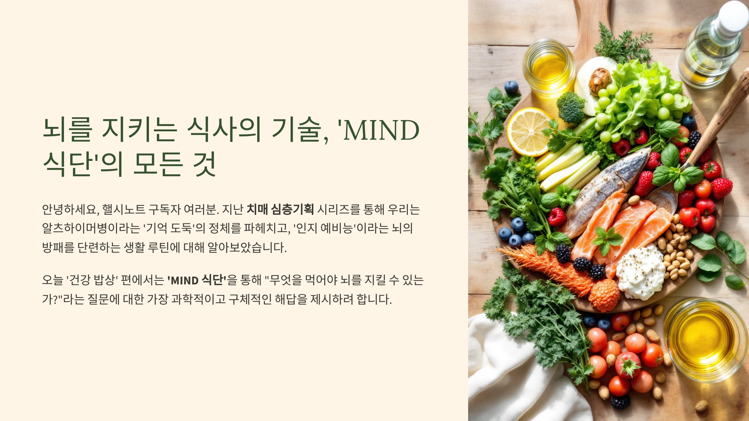 [치매 심층기획] 뇌를 지키는 식사의 기술, 'MIND 식단'의 모든 것
