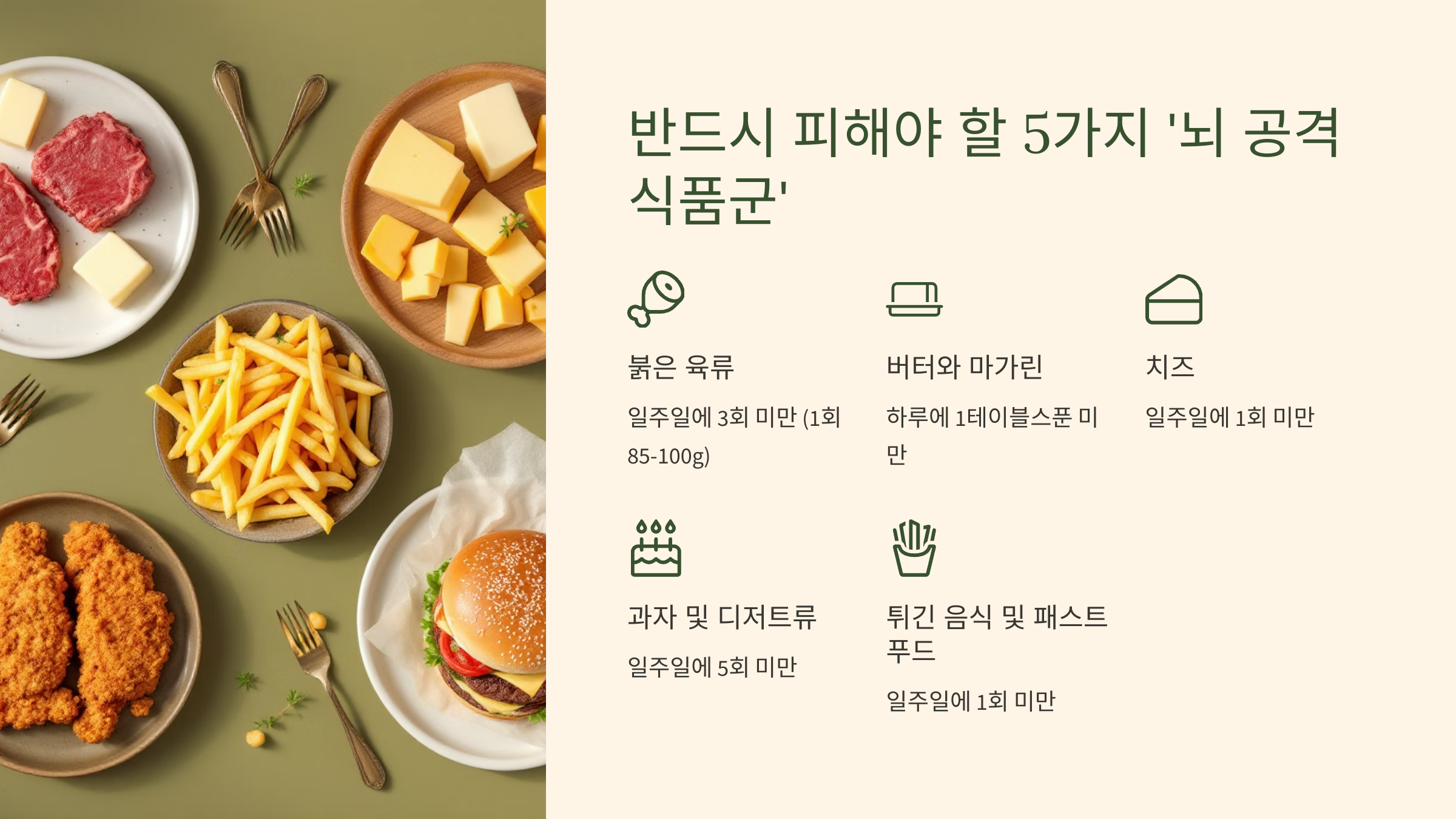 3. 반드시 피해야 할 5가지 '뇌 공격 식품군' 🍩